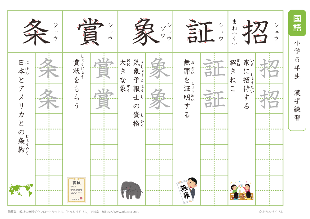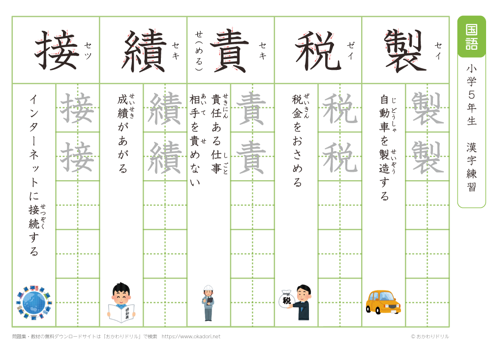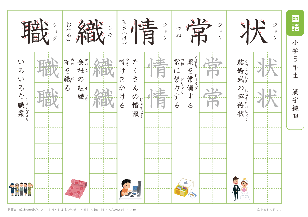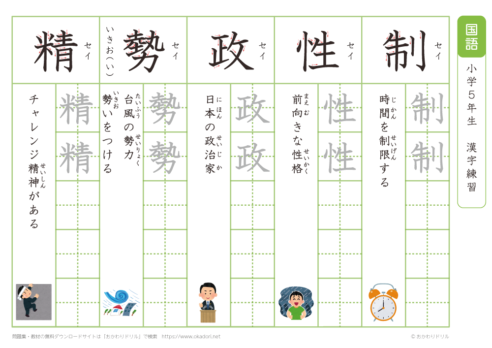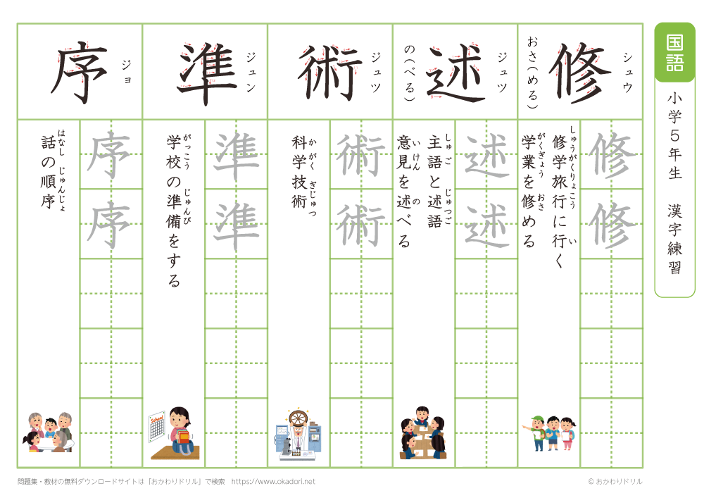 小学5年生の漢字の書き方の練習に、ぜひ利用して下さいね!