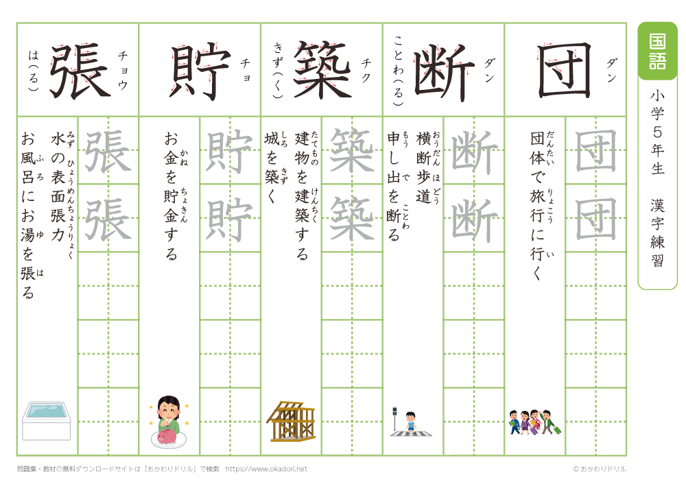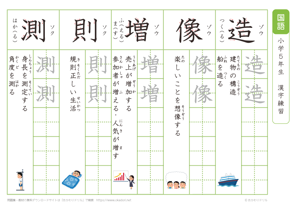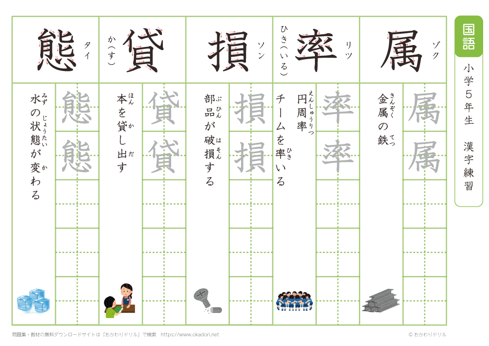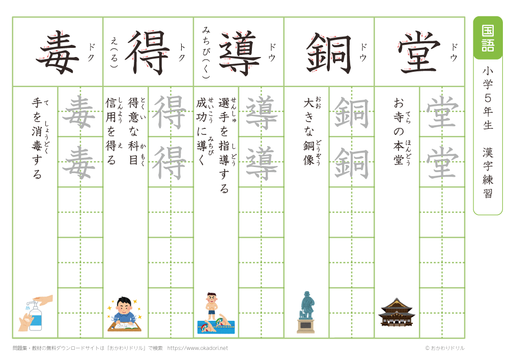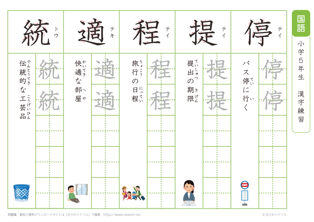 小学5年生の漢字の書き方の練習に、ぜひ利用して下さいね!