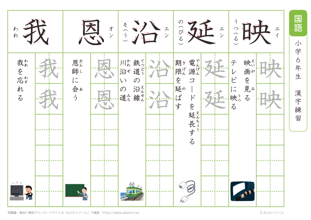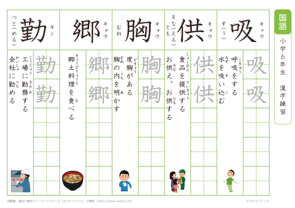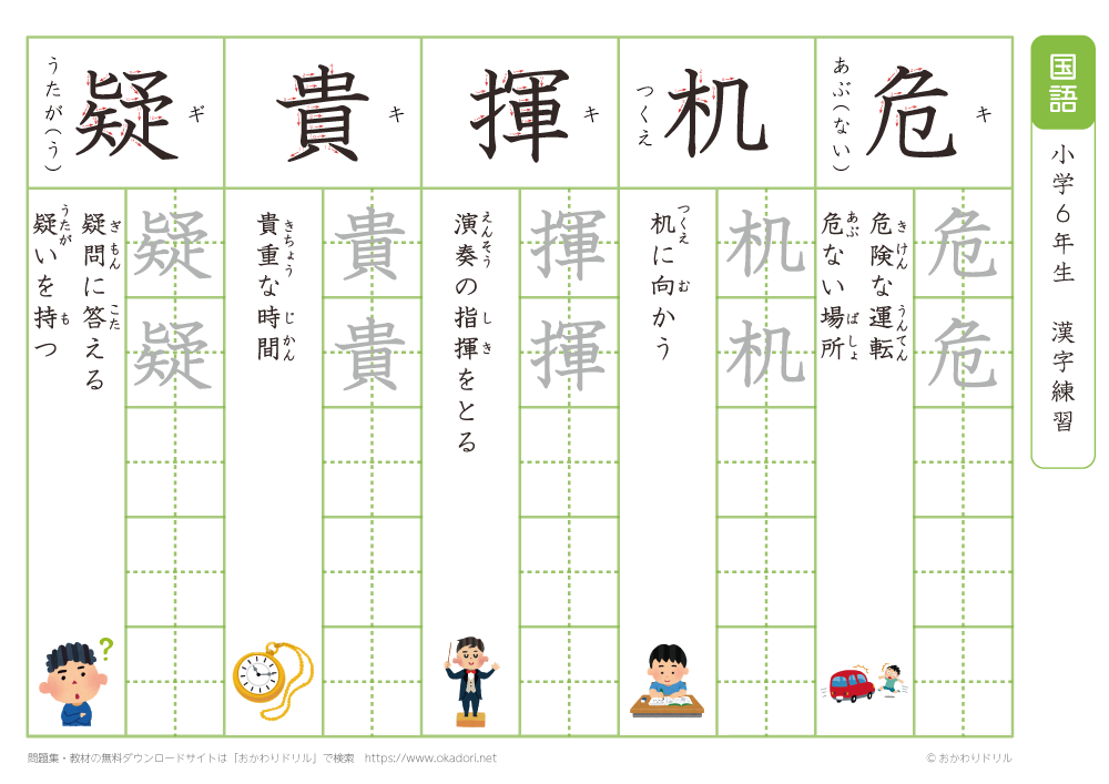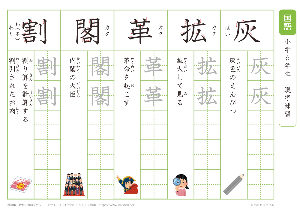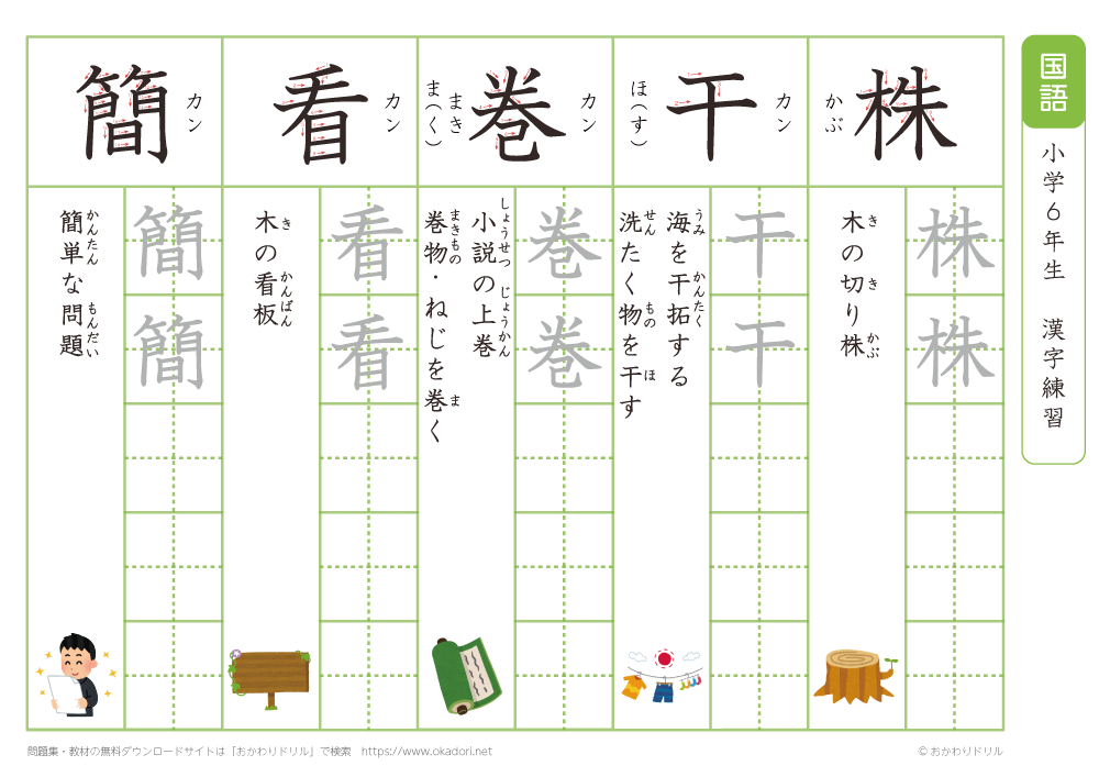 小学6年生の漢字の書き方の練習に、ぜひ利用して下さいね!