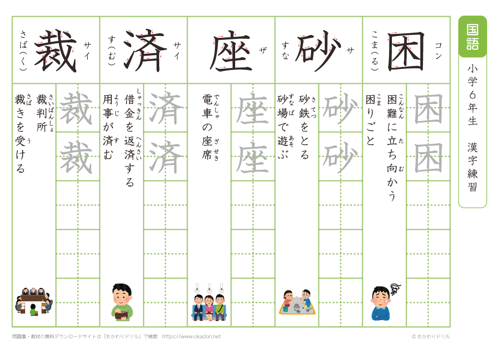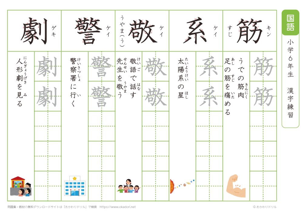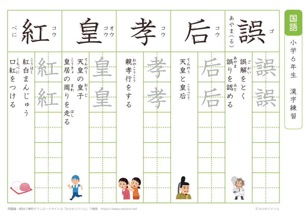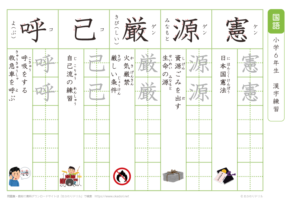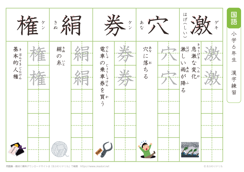 小学6年生の漢字の書き方の練習に、ぜひ利用して下さいね!
