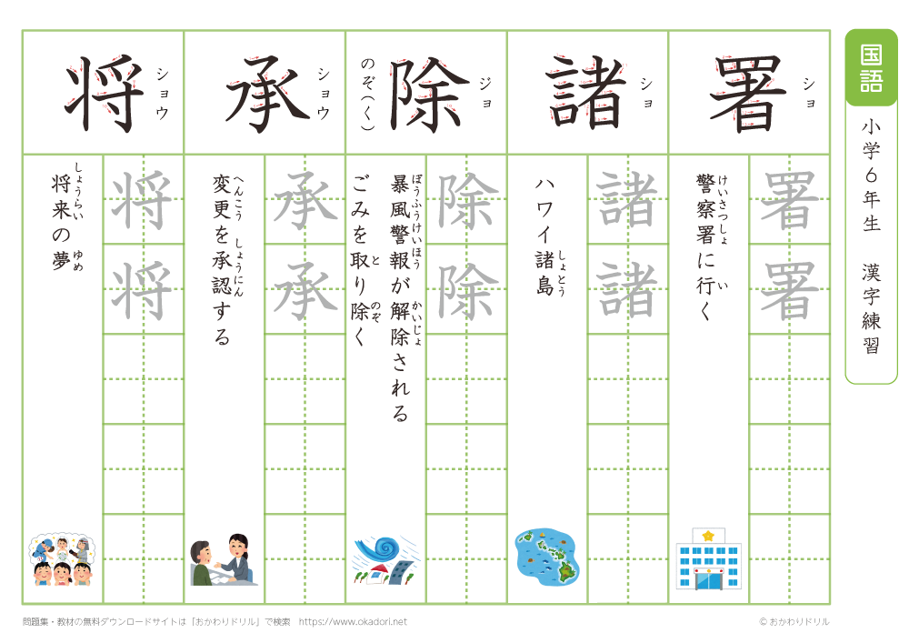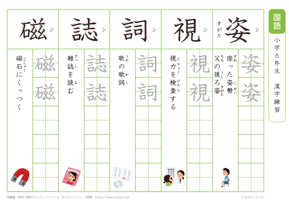 小学6年生の漢字の書き方の練習に、ぜひ利用して下さいね!