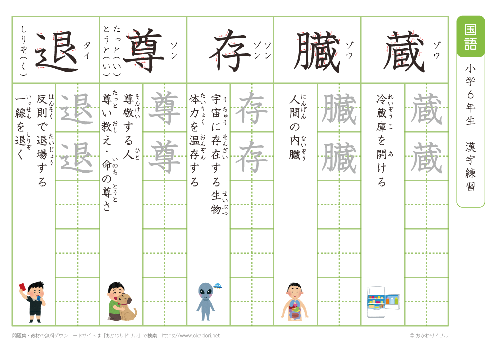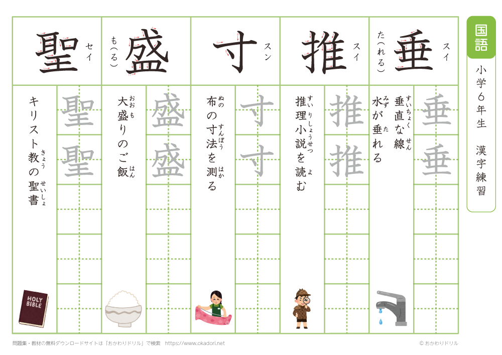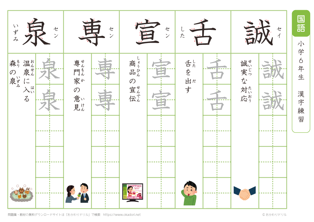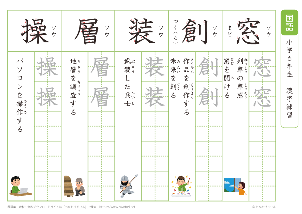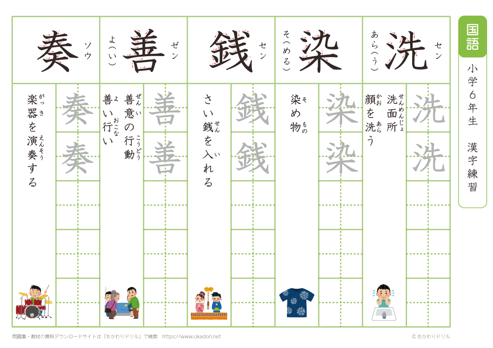 小学6年生の漢字の書き方の練習に、ぜひ利用して下さいね!