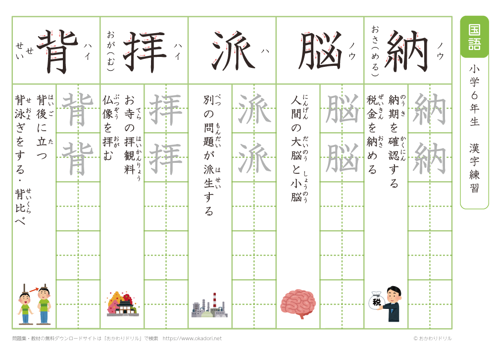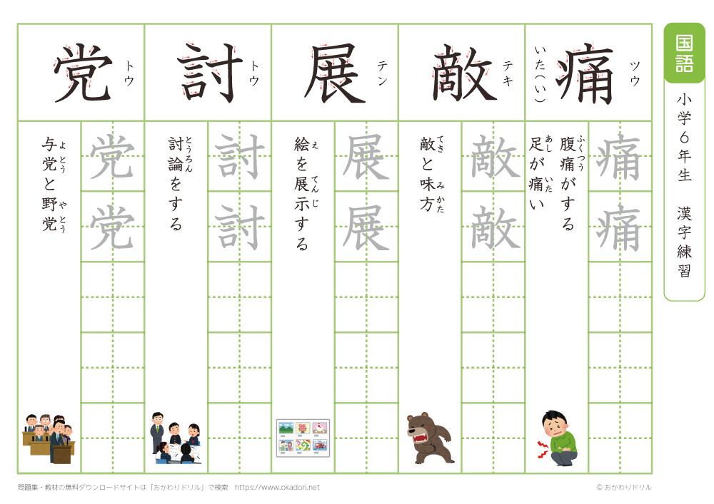 小学6年生の漢字の書き方の練習に、ぜひ利用して下さいね!