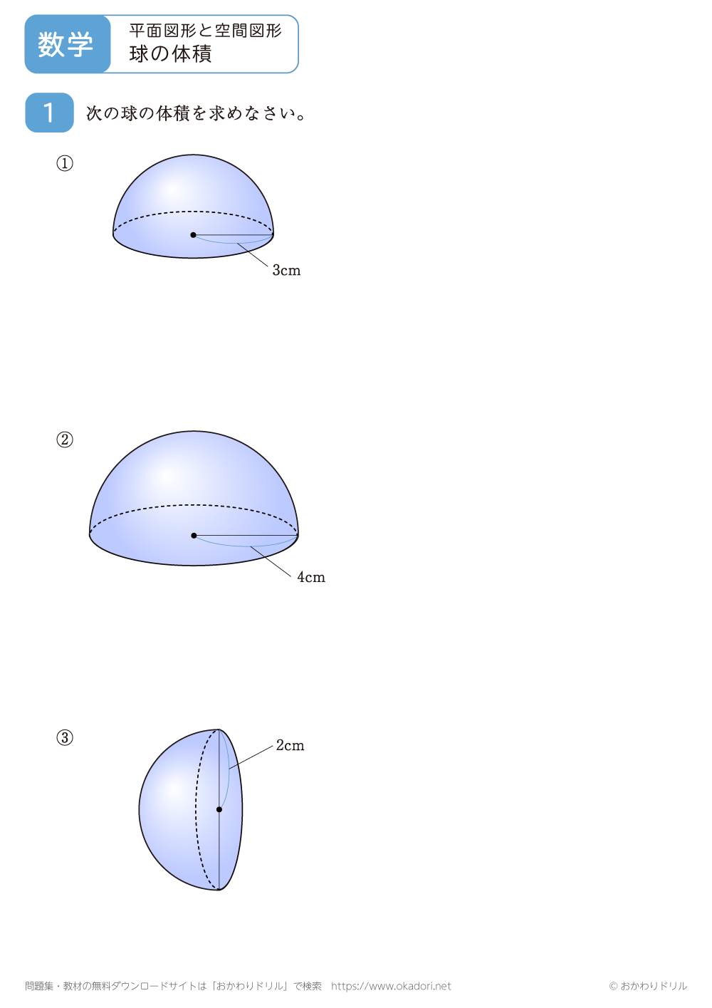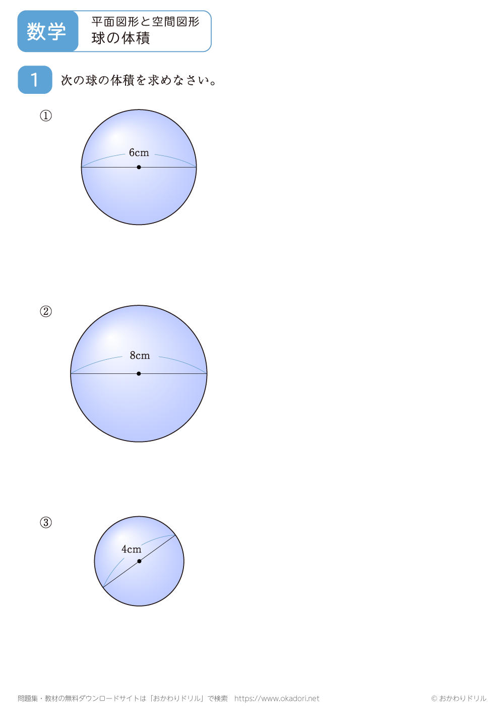 このページは、中学1年生で習う「球の体積」が学習できるページです。