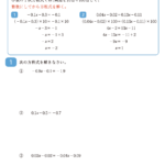 ・小数の1次方程式では、両辺を10倍や100倍して、整数にしてから方程式を解きます。