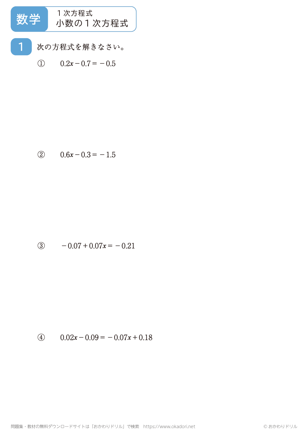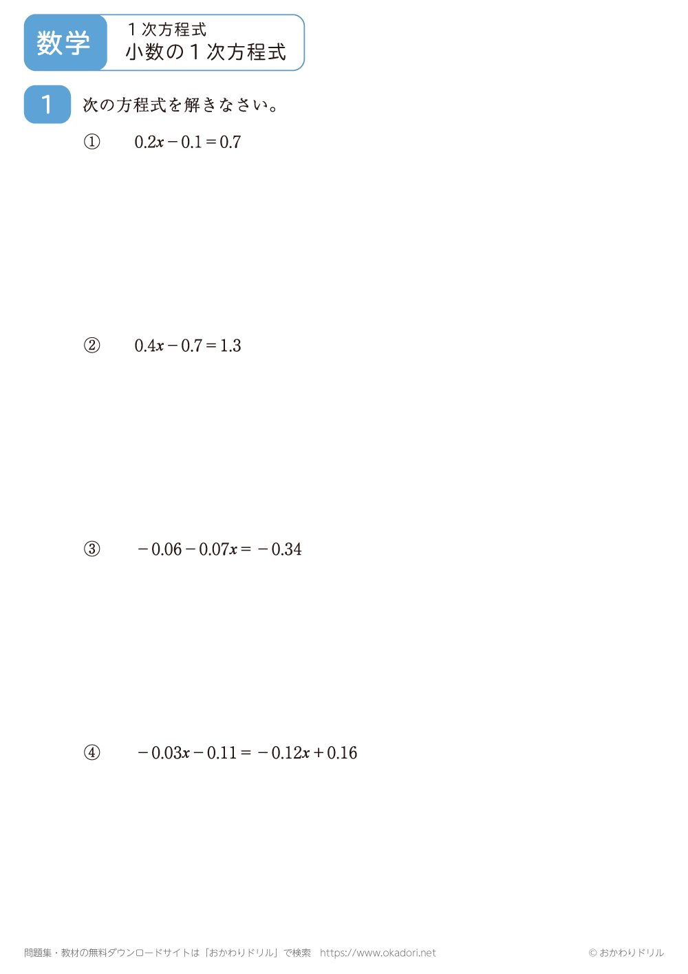 このページは、中学1年生で習う「小数の1次方程式」が学習できるページです。 この ...