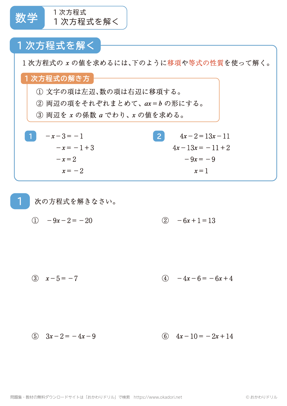 このページは、中学1年生で習う「1次方程式」が学習できるページです。