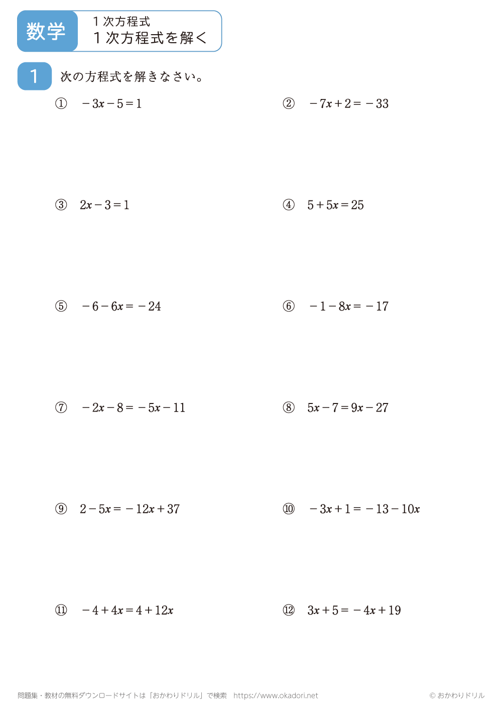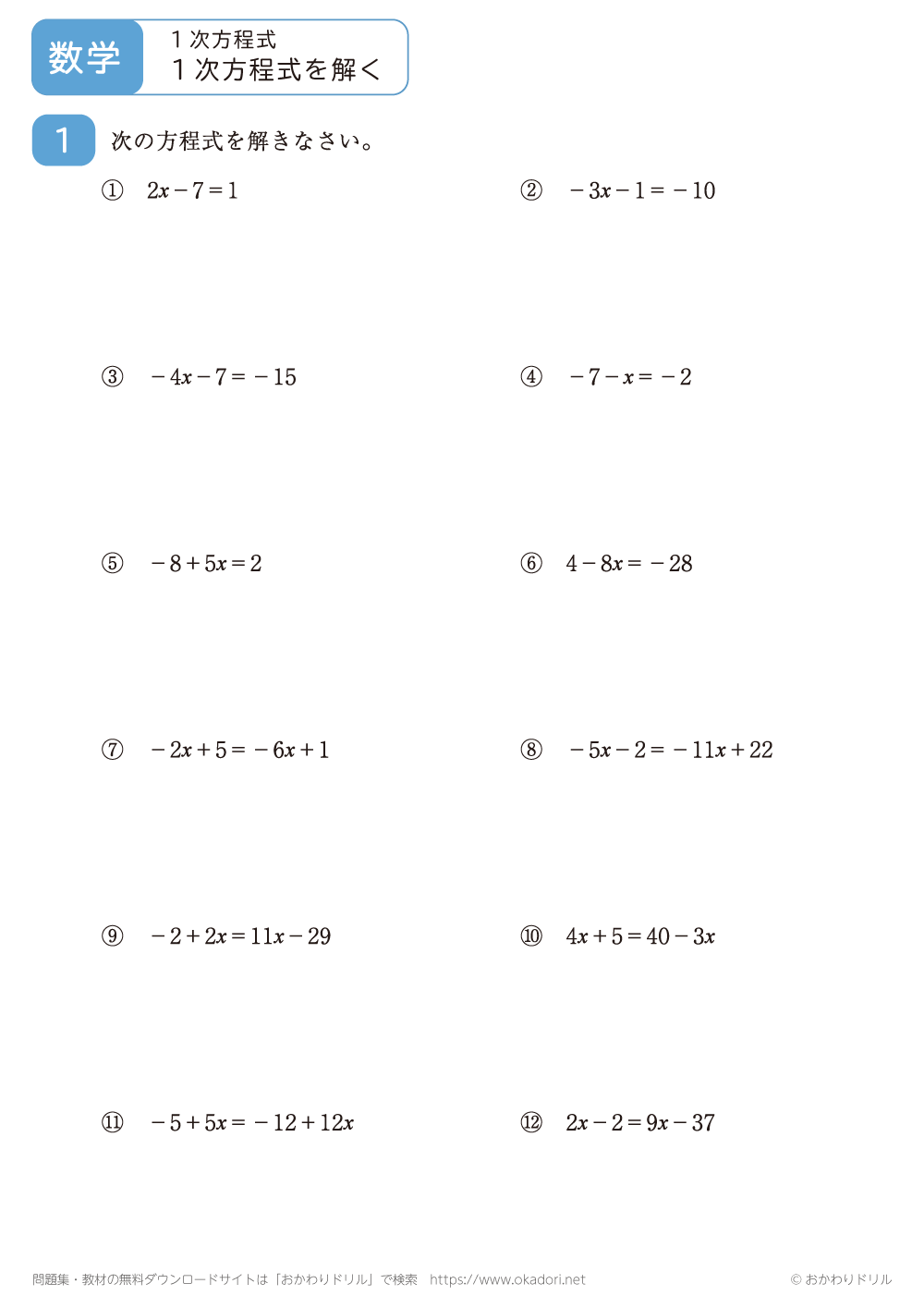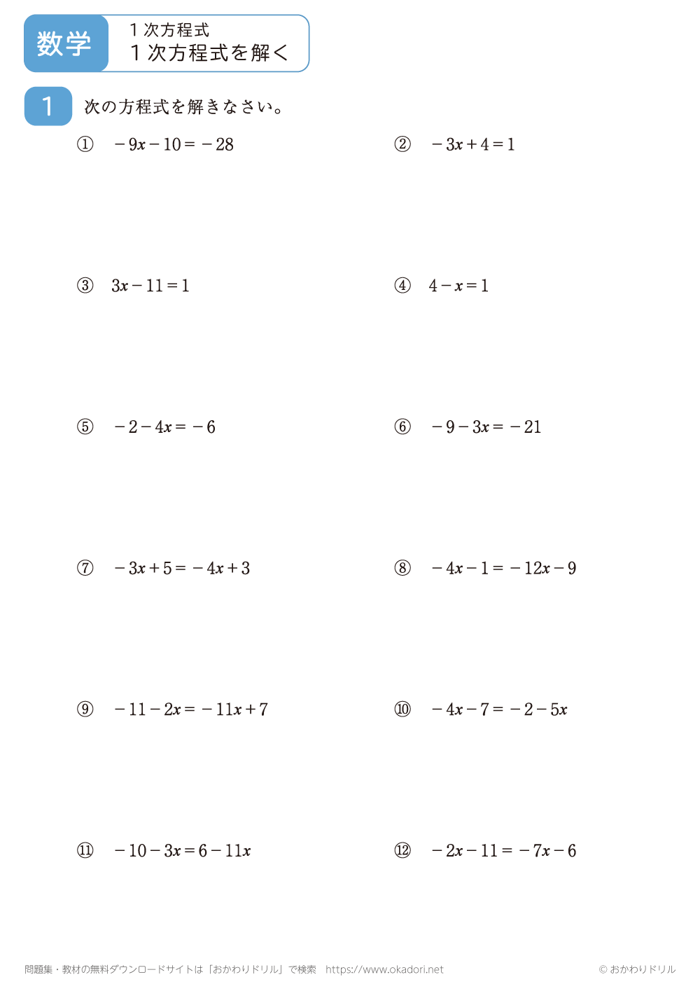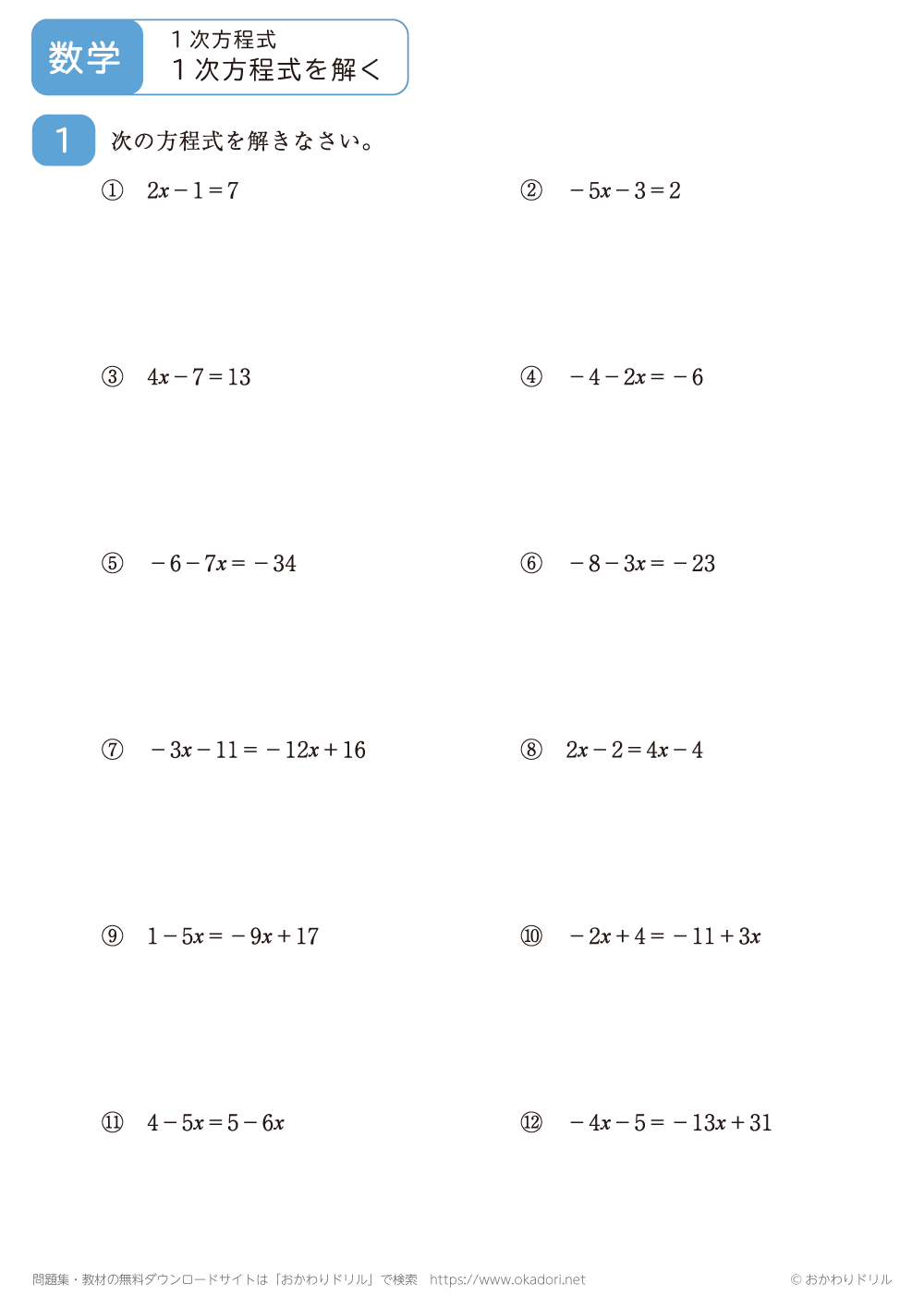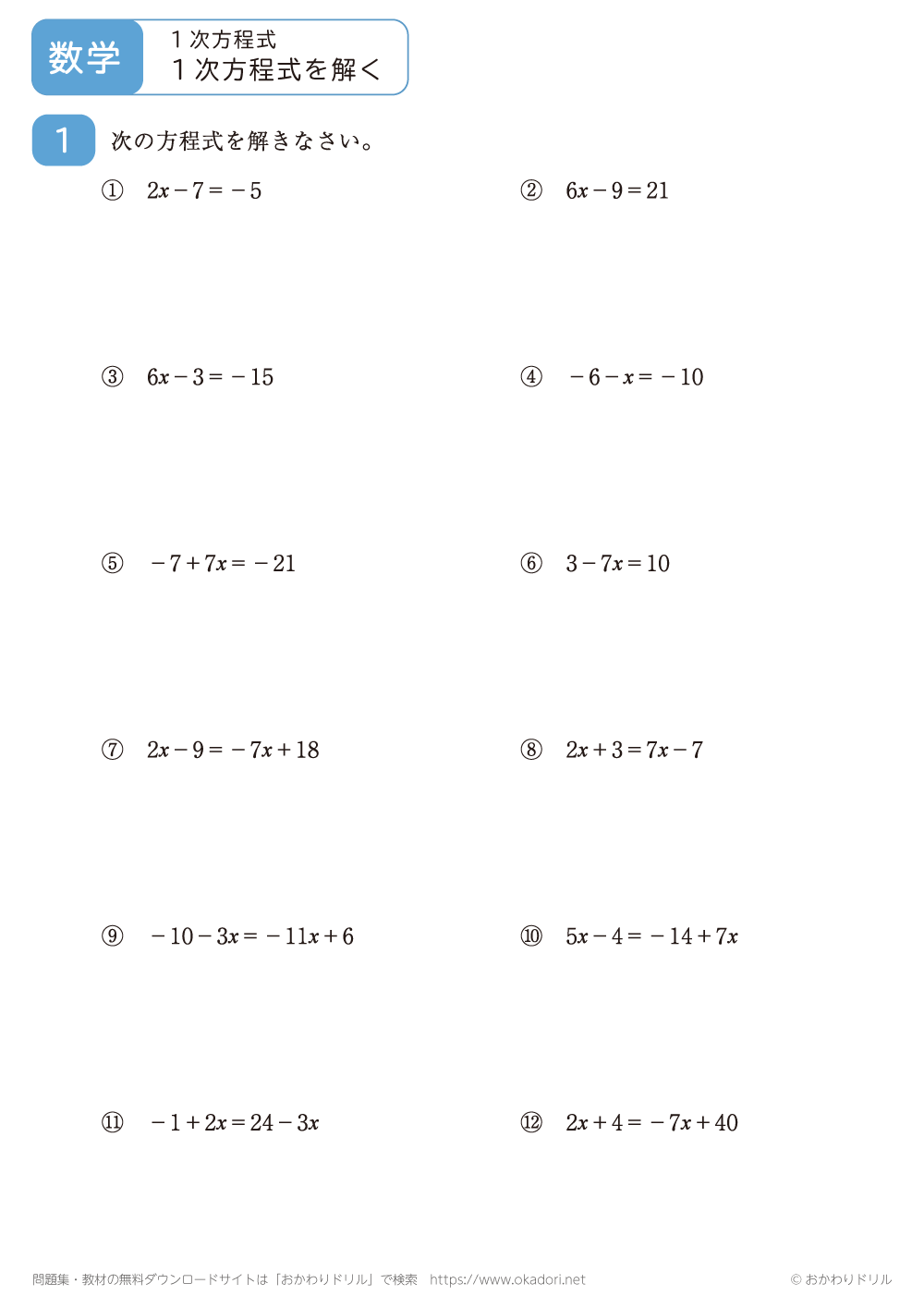 このページは、中学1年生で習う「1次方程式」が学習できるページです。 等式の性質 ...