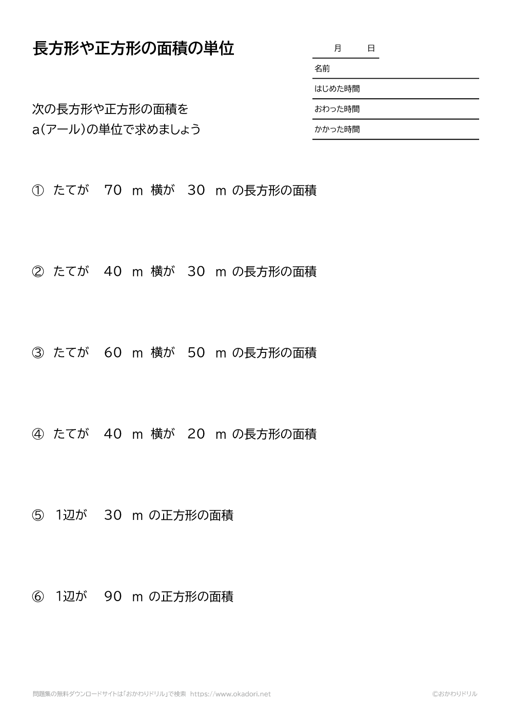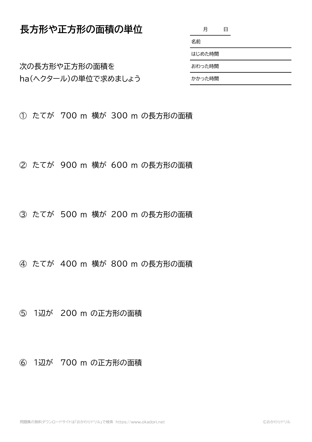 ・求める面積の単位は、平方センチメートル、平方メートル、平方キロメートル、アール、ヘクタールなどのさまざまな単位で求めます。