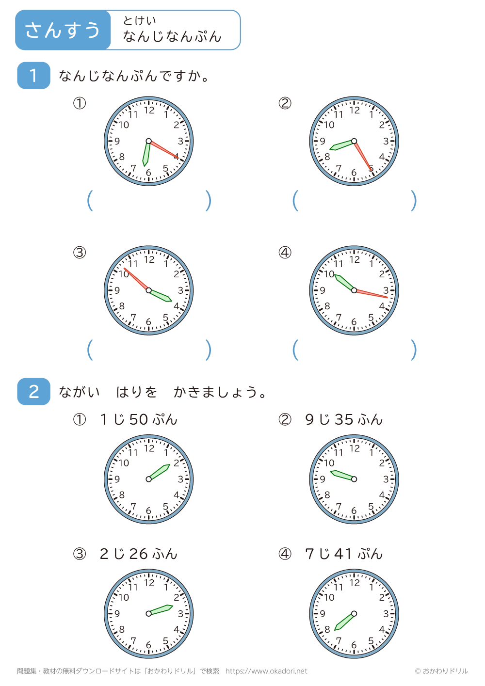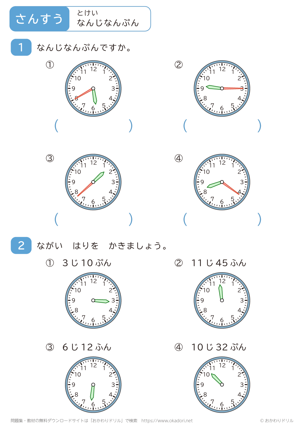 「何時何分」の学習プリントはこちら