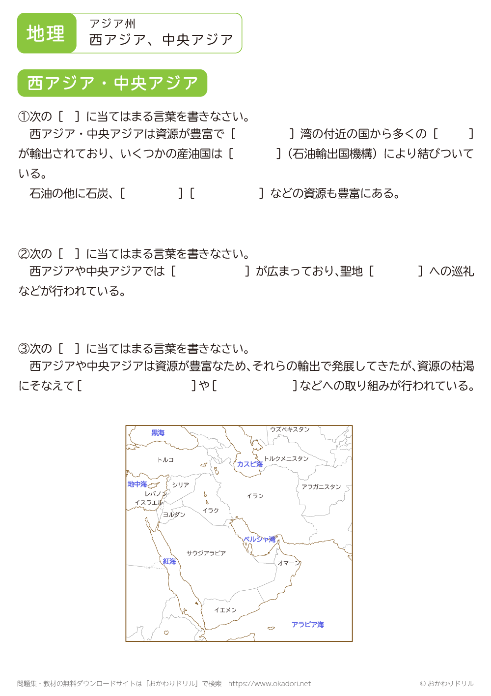 このページは、中学生で習う「西アジア、中央アジアの資源・宗教・課題」を学習できる ...
