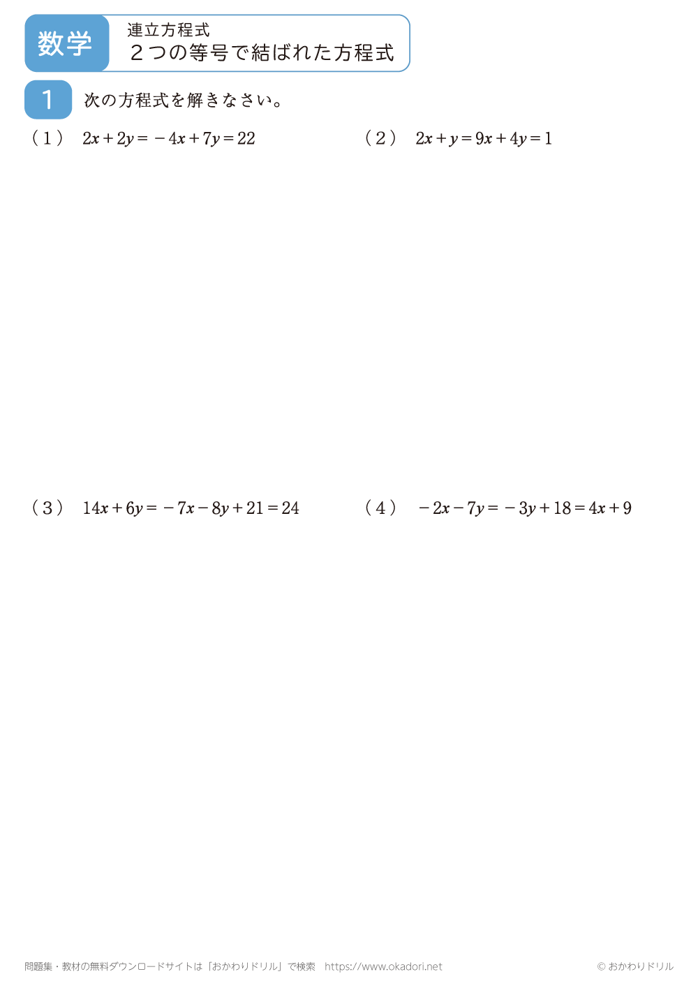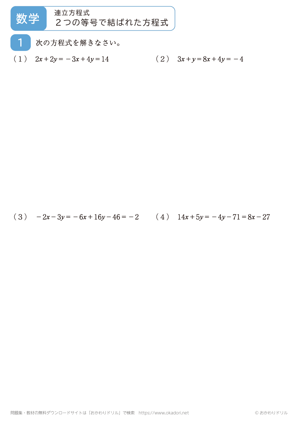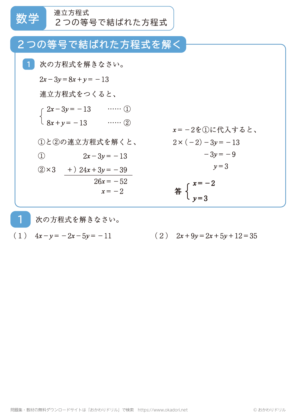このページは、中学2年生で習う「連立方程式を加減法で解く工夫」が学習できるページ ...