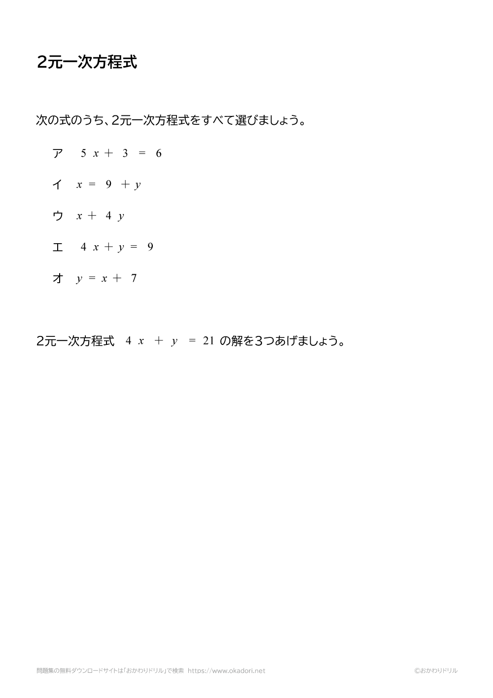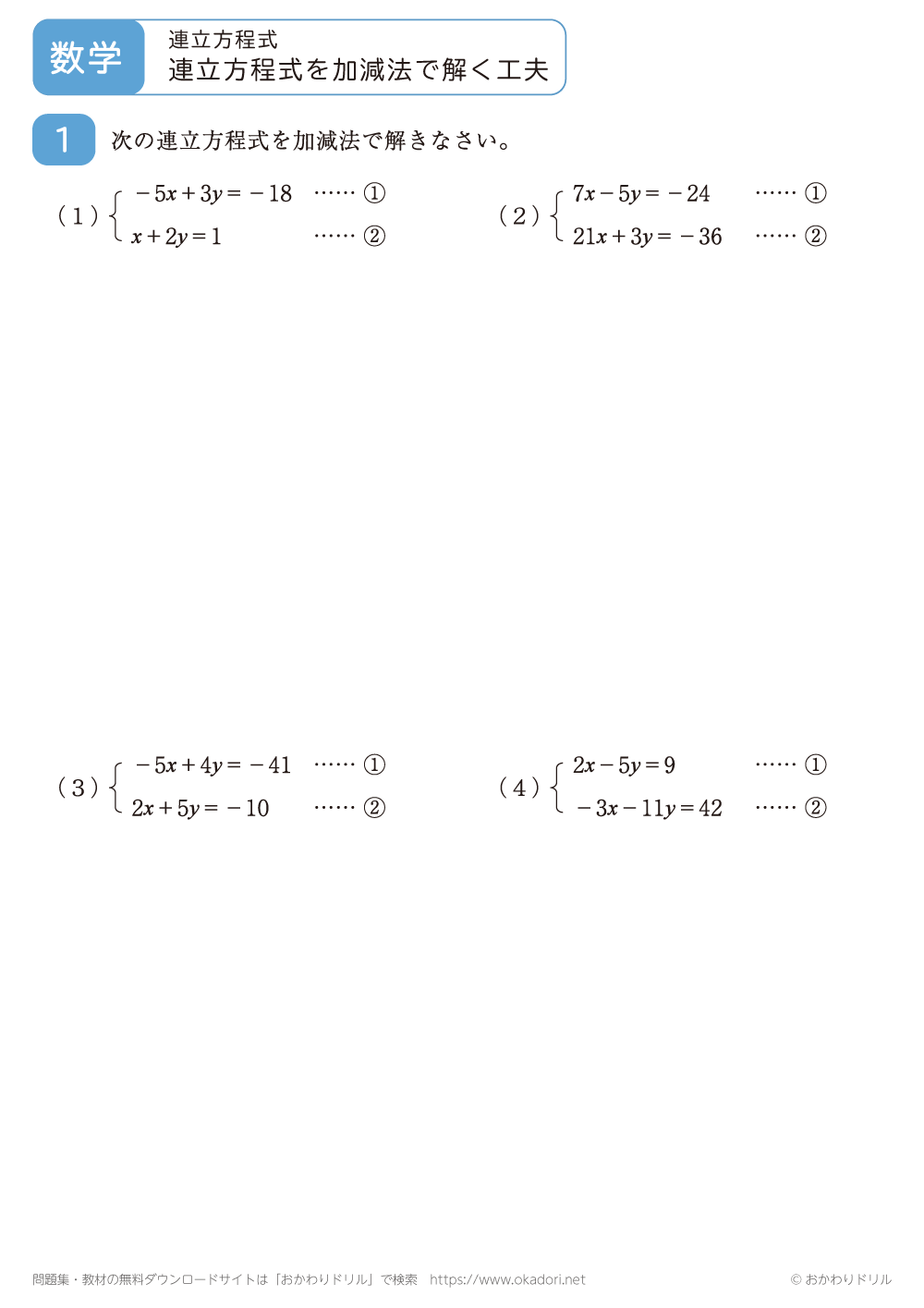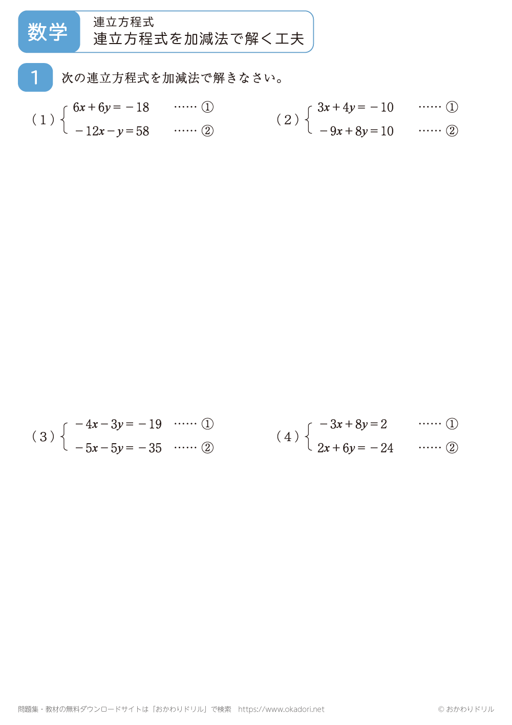 このページは、中学2年生で習う「連立方程式を加減法で解く工夫」が学習できるページ ...