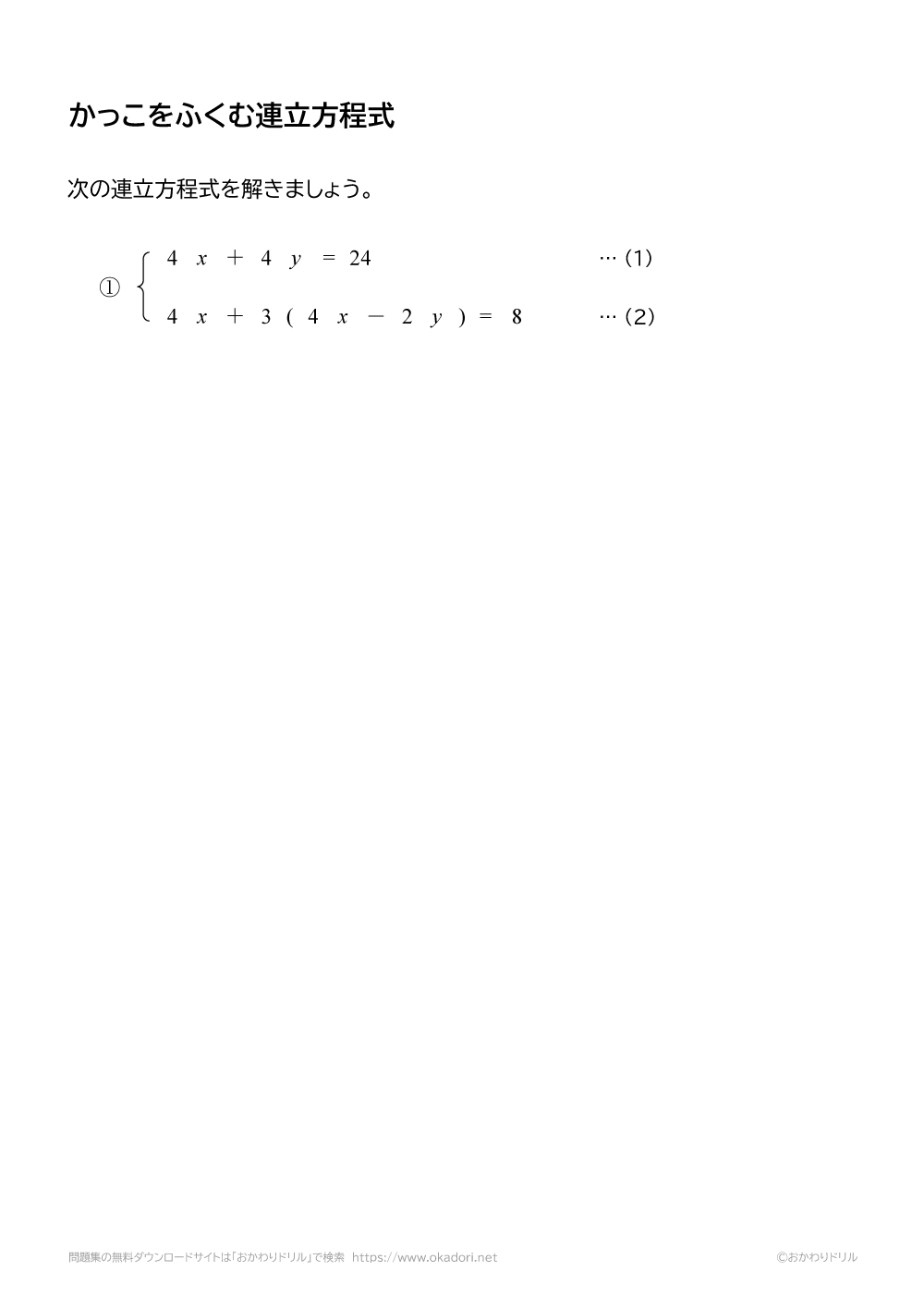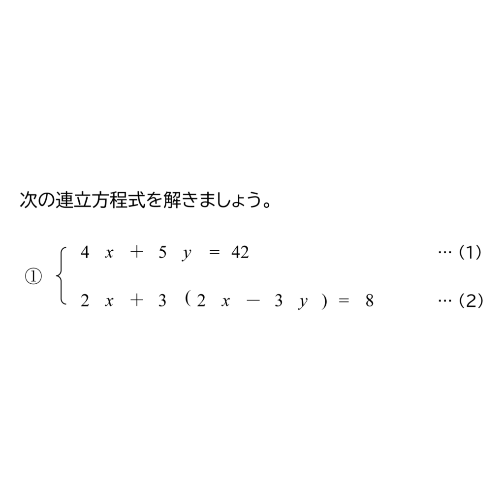 ・連立方程式を解くときに、式の中にかっこがあるときは、かっこをはずして、式を整理してから解きます。