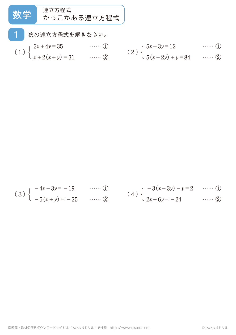 かっこがある連立方程式