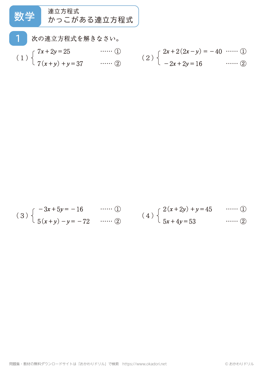「かっこがある連立方程式」学習プリントはこちら