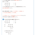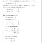 ・1つの式から、もう一方の式を加えたりひいたりすることで、文字を消去する解き方を加減法といいます。