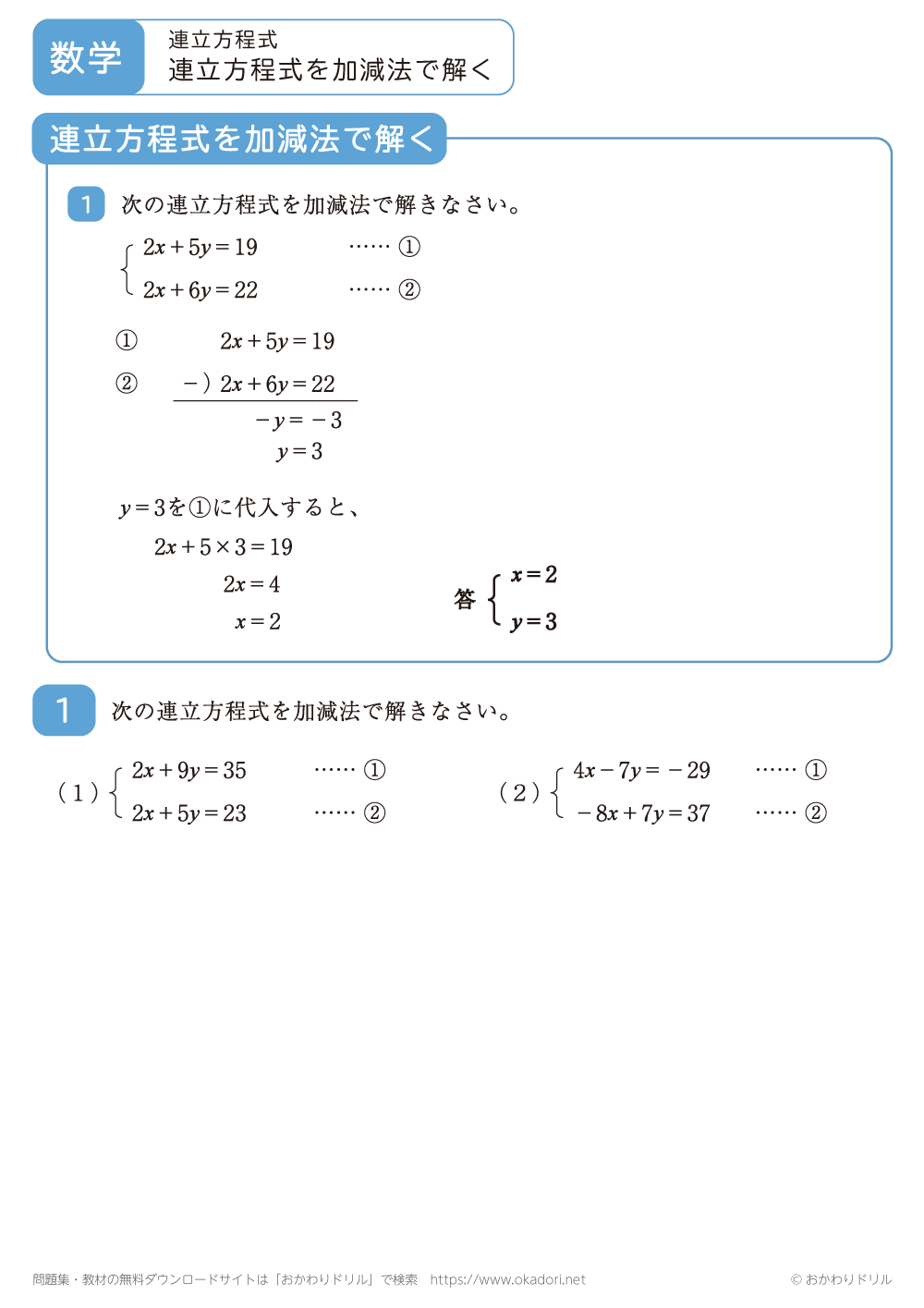 このページは、中学2年生で習う「連立方程式を加減法で解く工夫」が学習できるページ ...