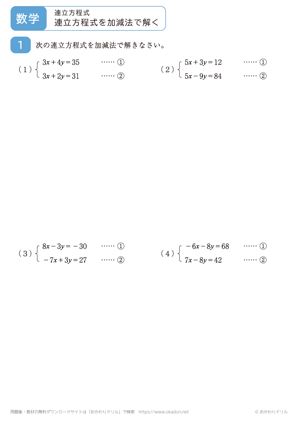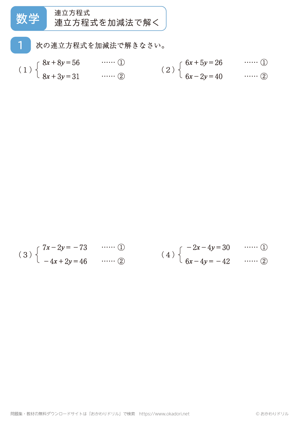 このページは、中学2年生で習う「連立方程式を加減法で解く」学習ができるページです ...
