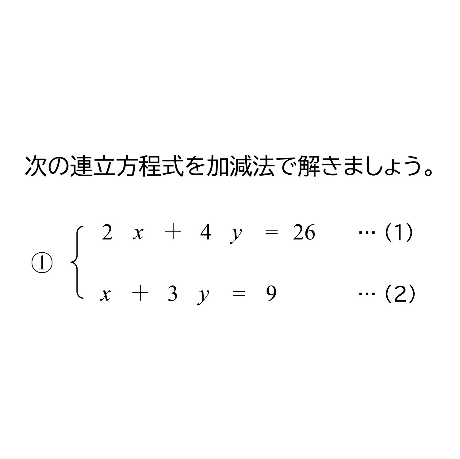 ・連立方程式を解くときは、2つの文字の1つを消去して、1つの文字の方程式にしてから解きます。