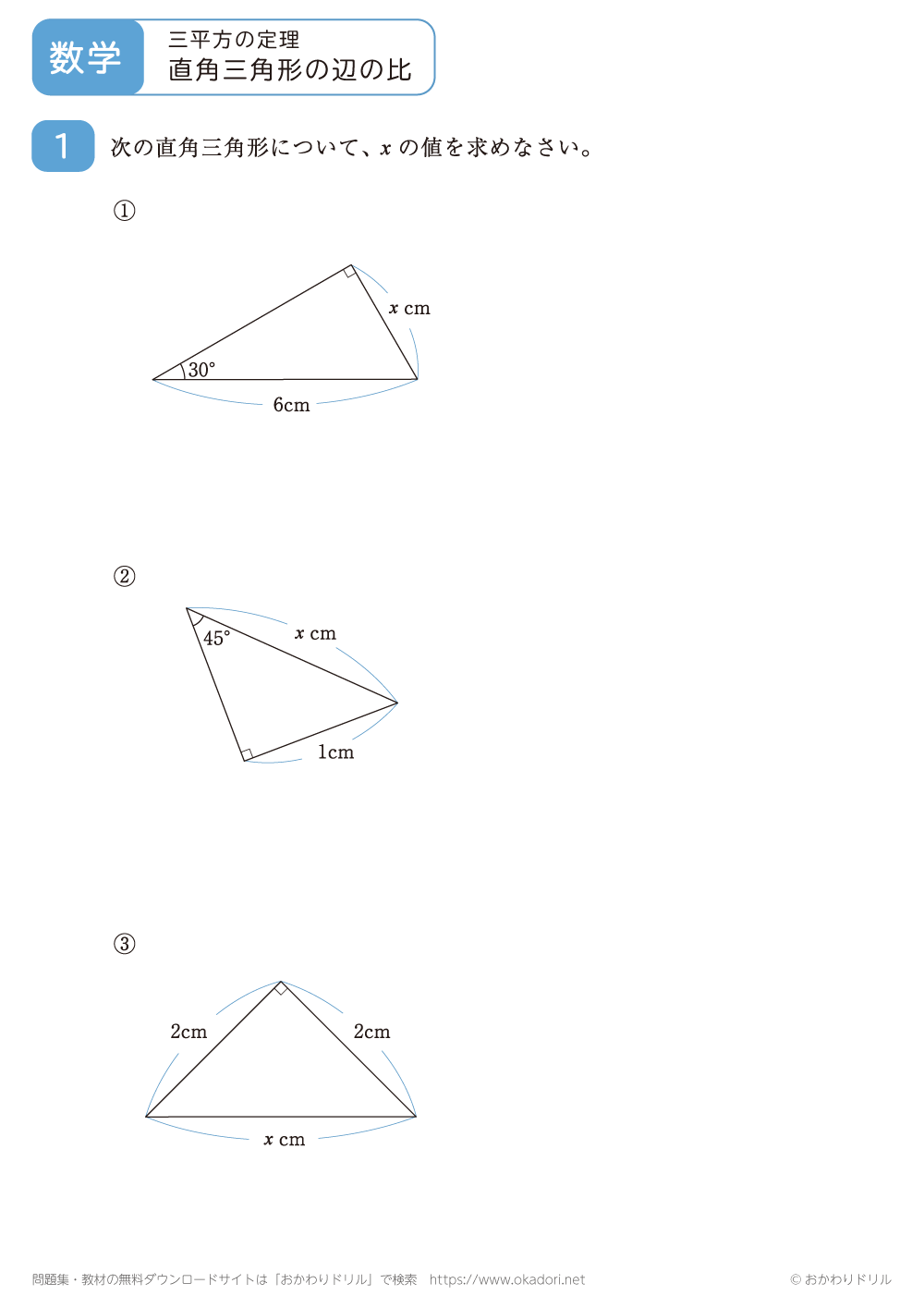 このページは、中学3年生で習う「直角三角形の辺の比」が学習できるページです。