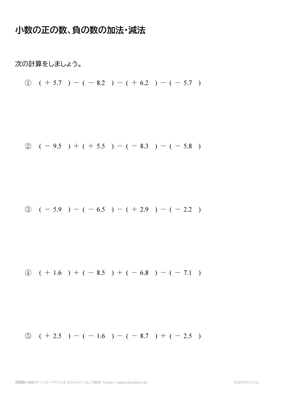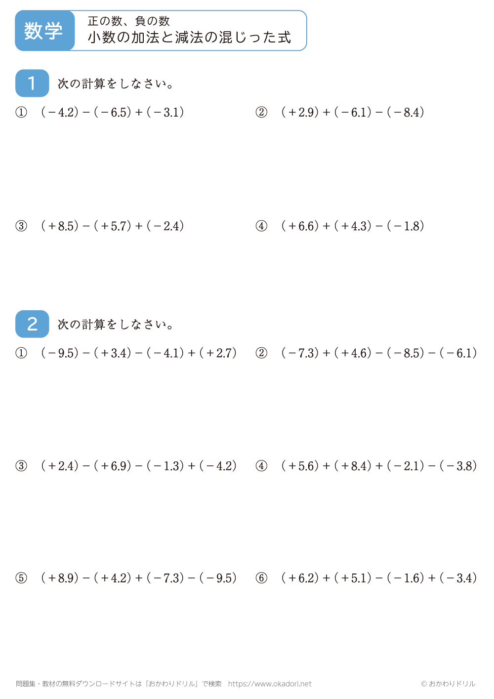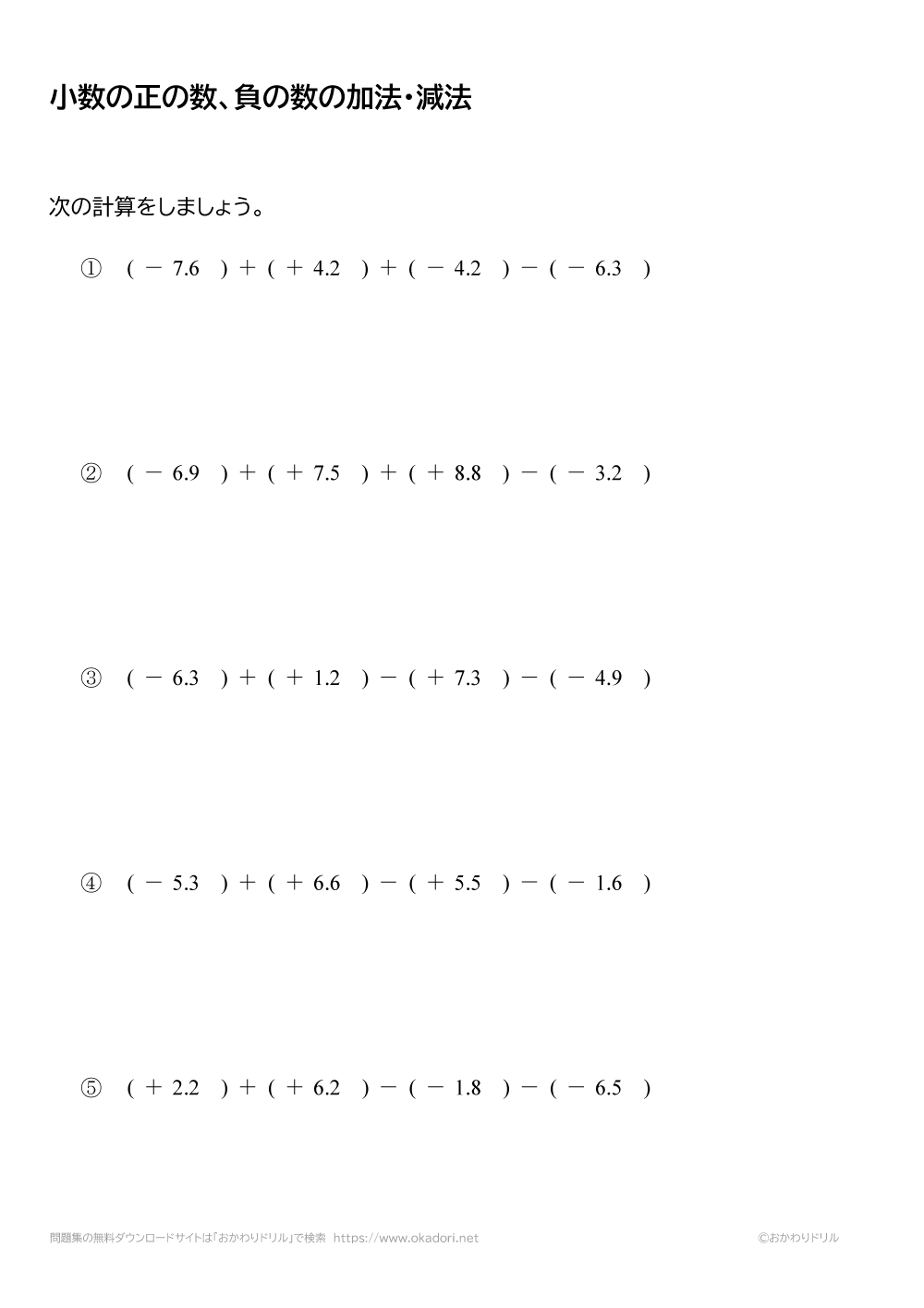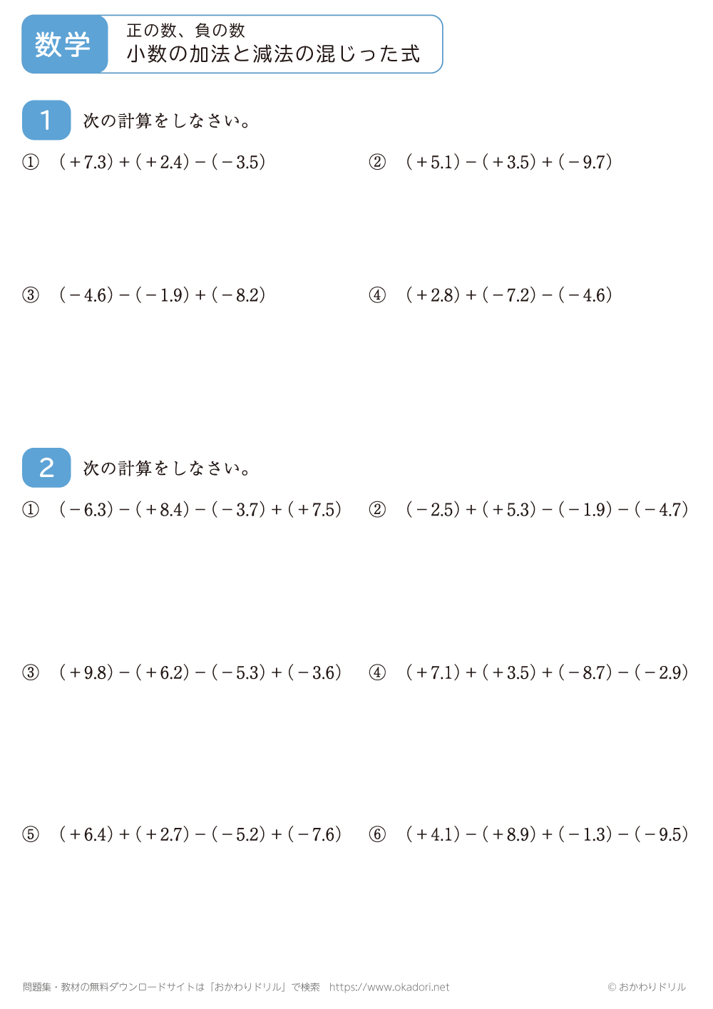 このページは、中学1年生で習う「小数の正の数・負の数の加法と減法の混じった式」が ...