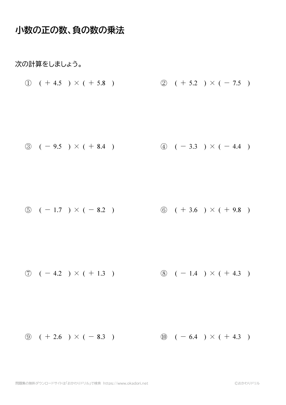 このページは、中学1年生で習う「小数の正の数・負の数の乗法」が学習できるページで ...