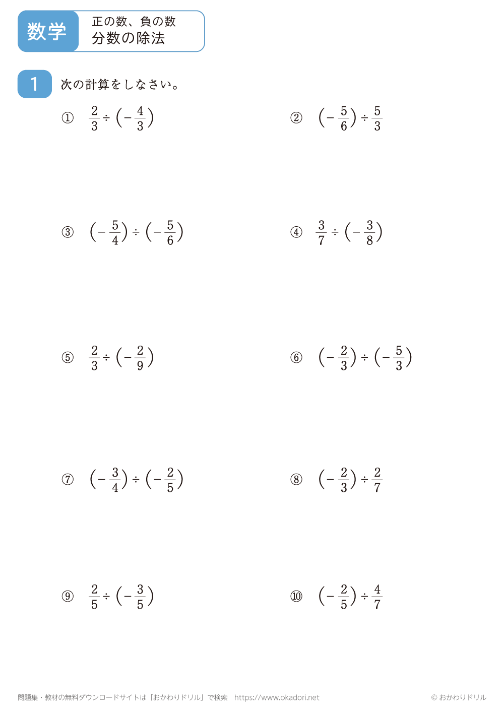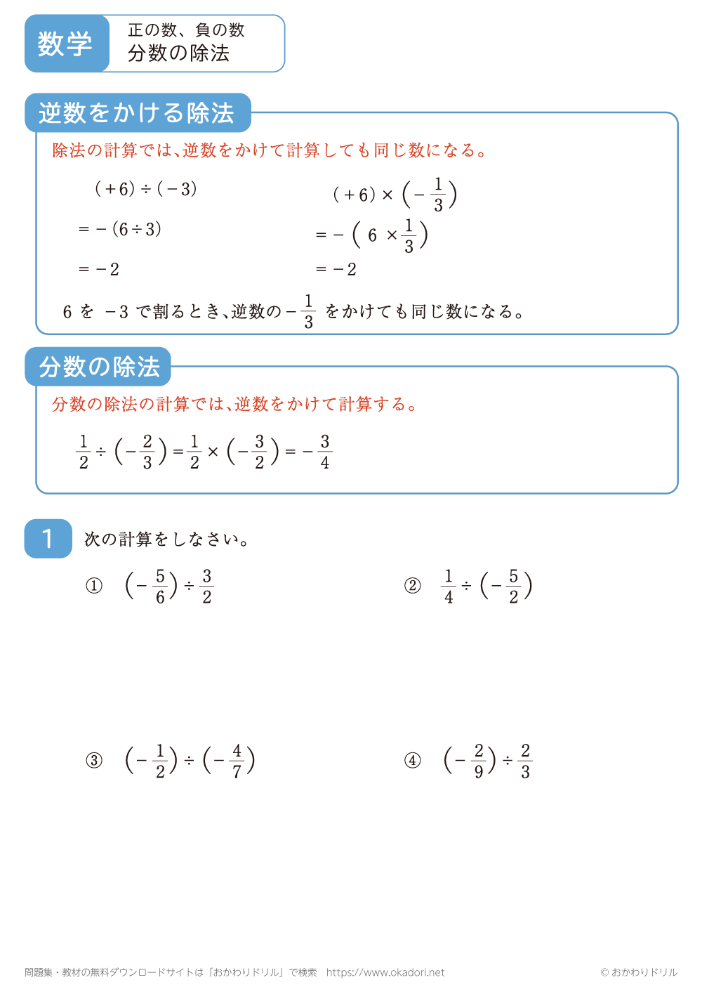 このページは、中学1年生で習う「分数の正の数・負の数の除法」が学習できるページで ...