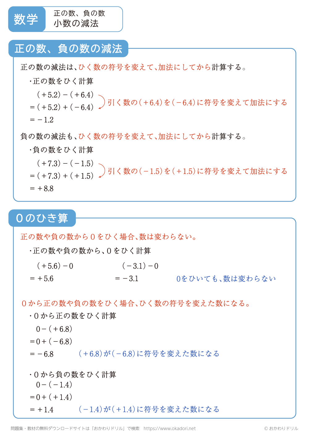 このページは、中学1年生で習う「小数の正の数・負の数の減法」が学習できるページで ...
