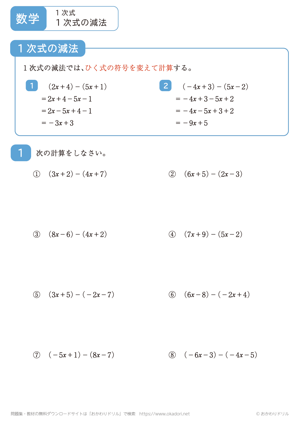 このページは、中学1年生で習う「正の数・負の数の減法」が学習できるページです。 ...