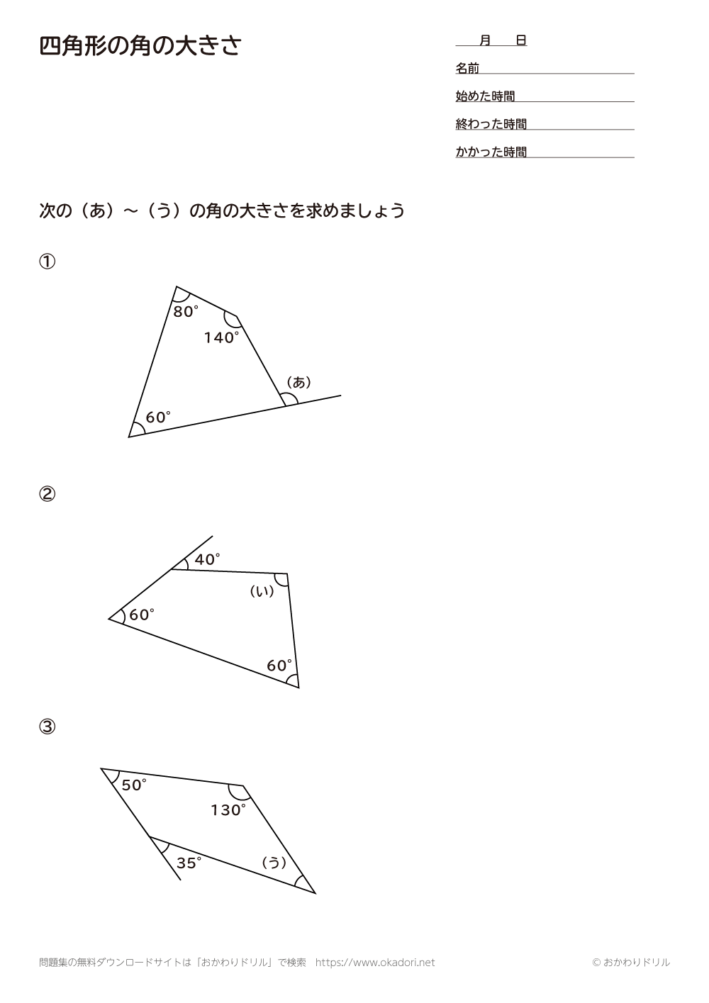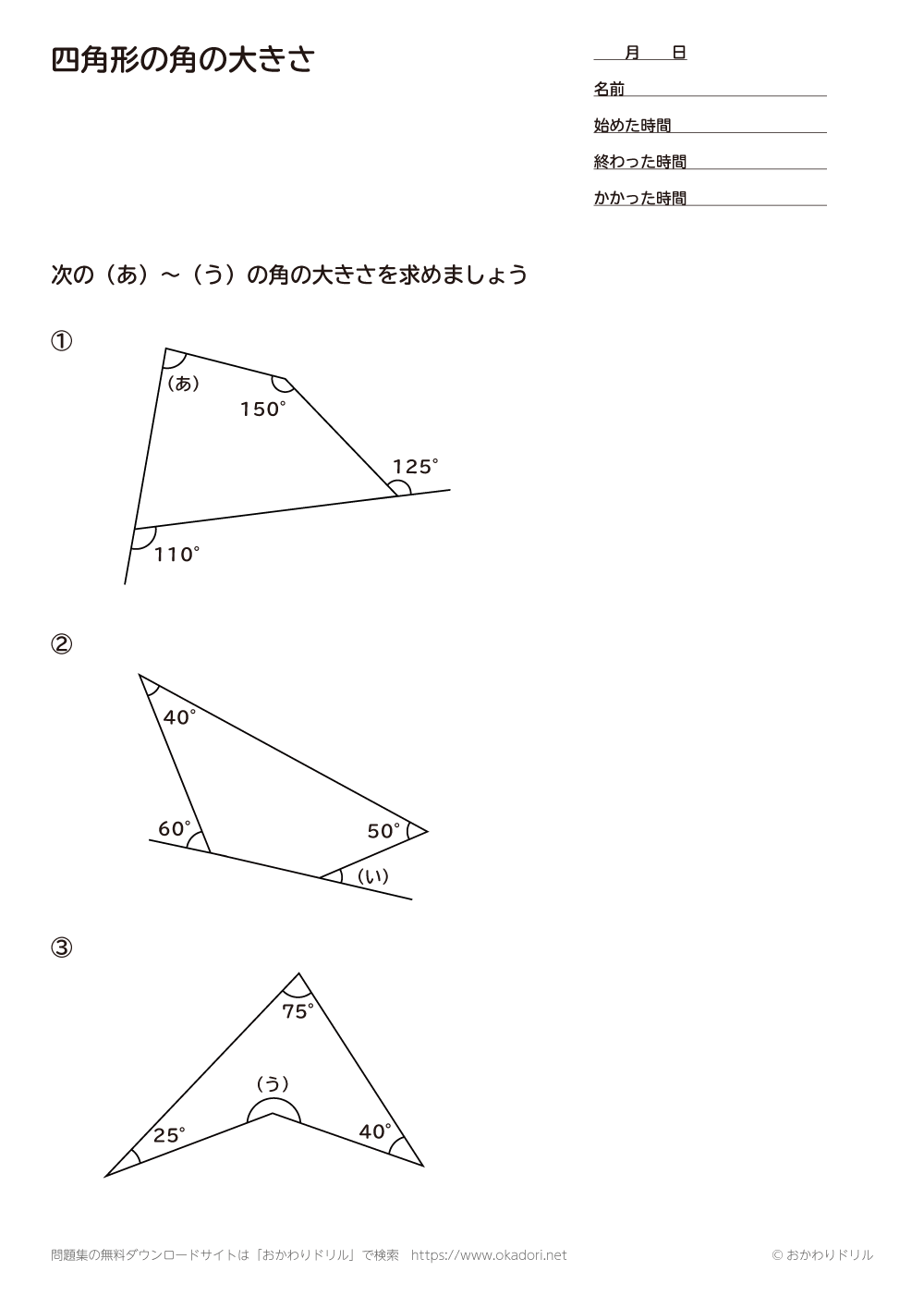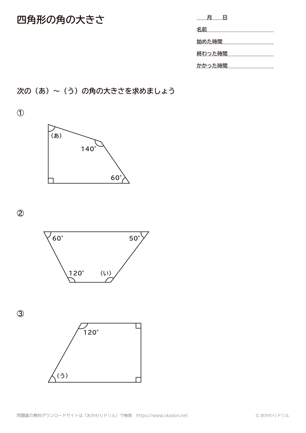 このページは、小学5年生が四角形の角について学習するための「四角形の角の大きさ」が学習できるページです。
