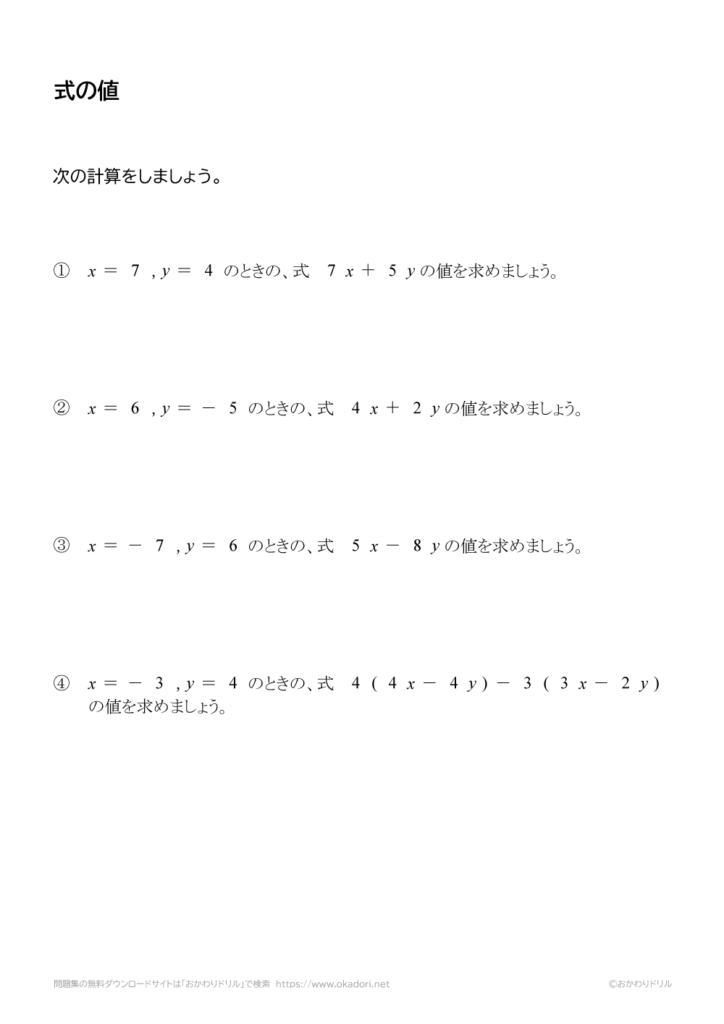 このページは、中学2年生で習う「式の値」が学習できるページです。