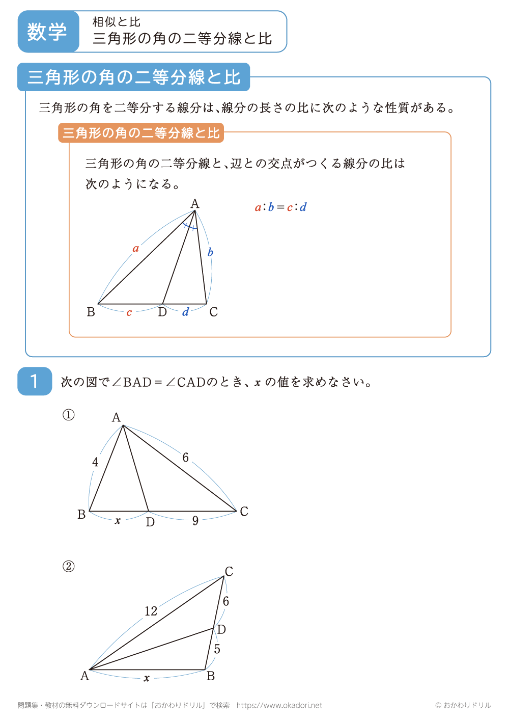 このページは、中学3年生で習う「三角形の角の二等分線と線分の比」が学習できるペー ...