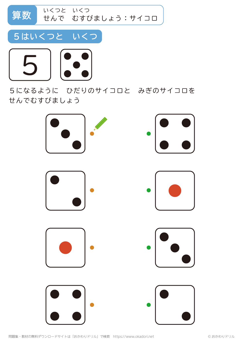 このページは、小学1年生で習う「いくつといくつ:サイコロ」を学習できるページです ...