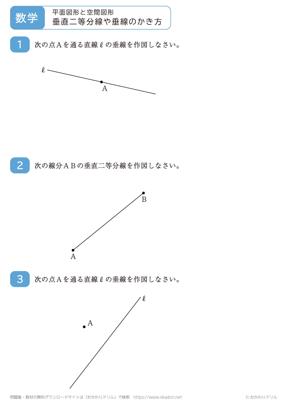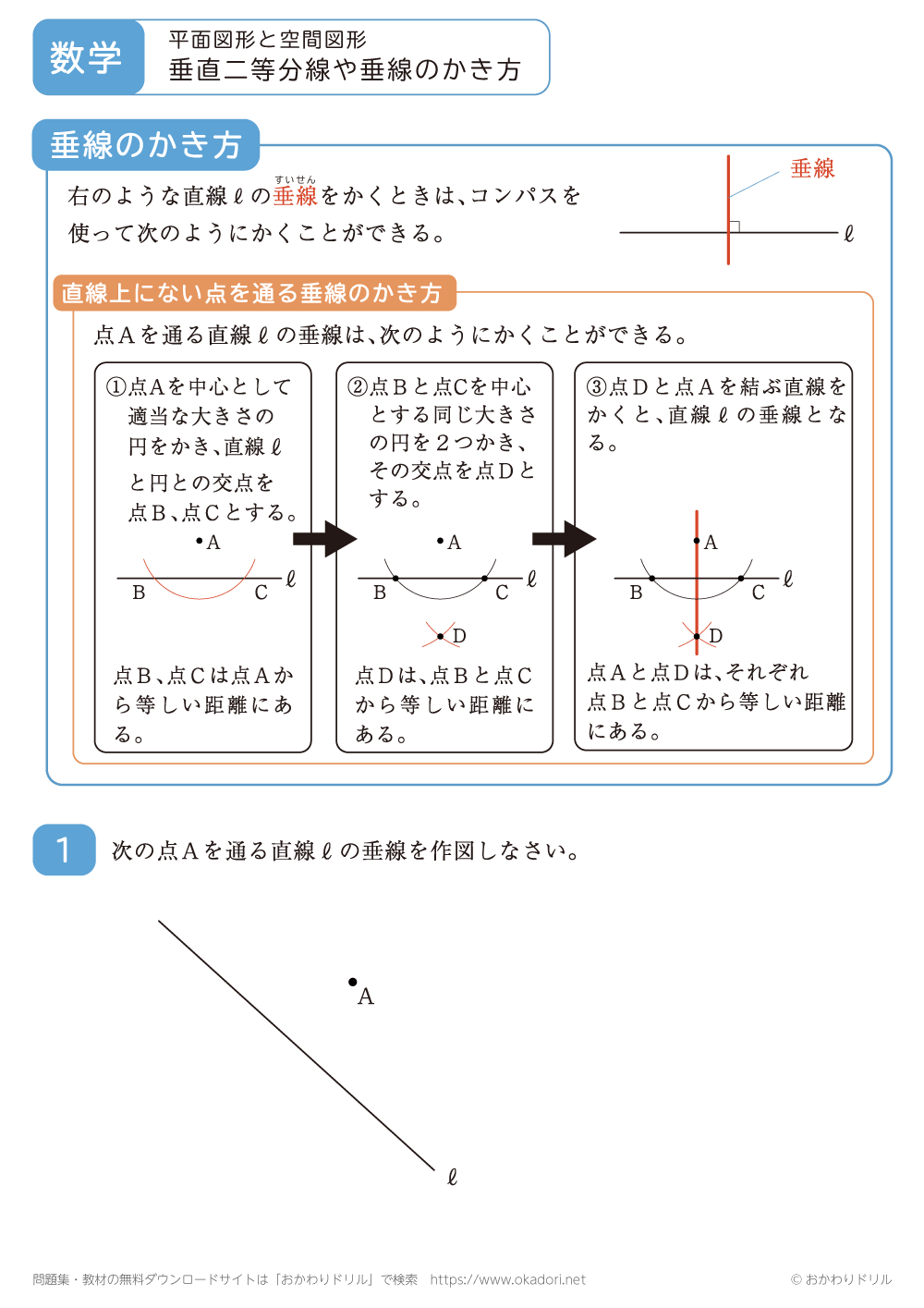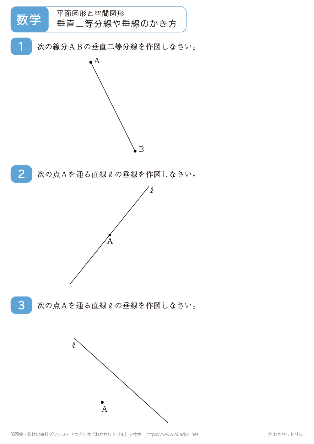 「垂直二等分線や垂線のかき方」の学習プリントはこちら