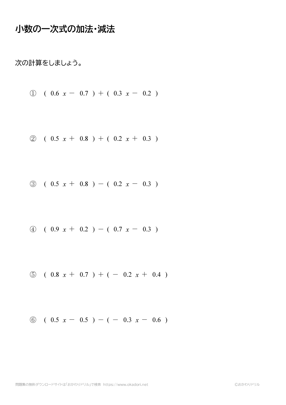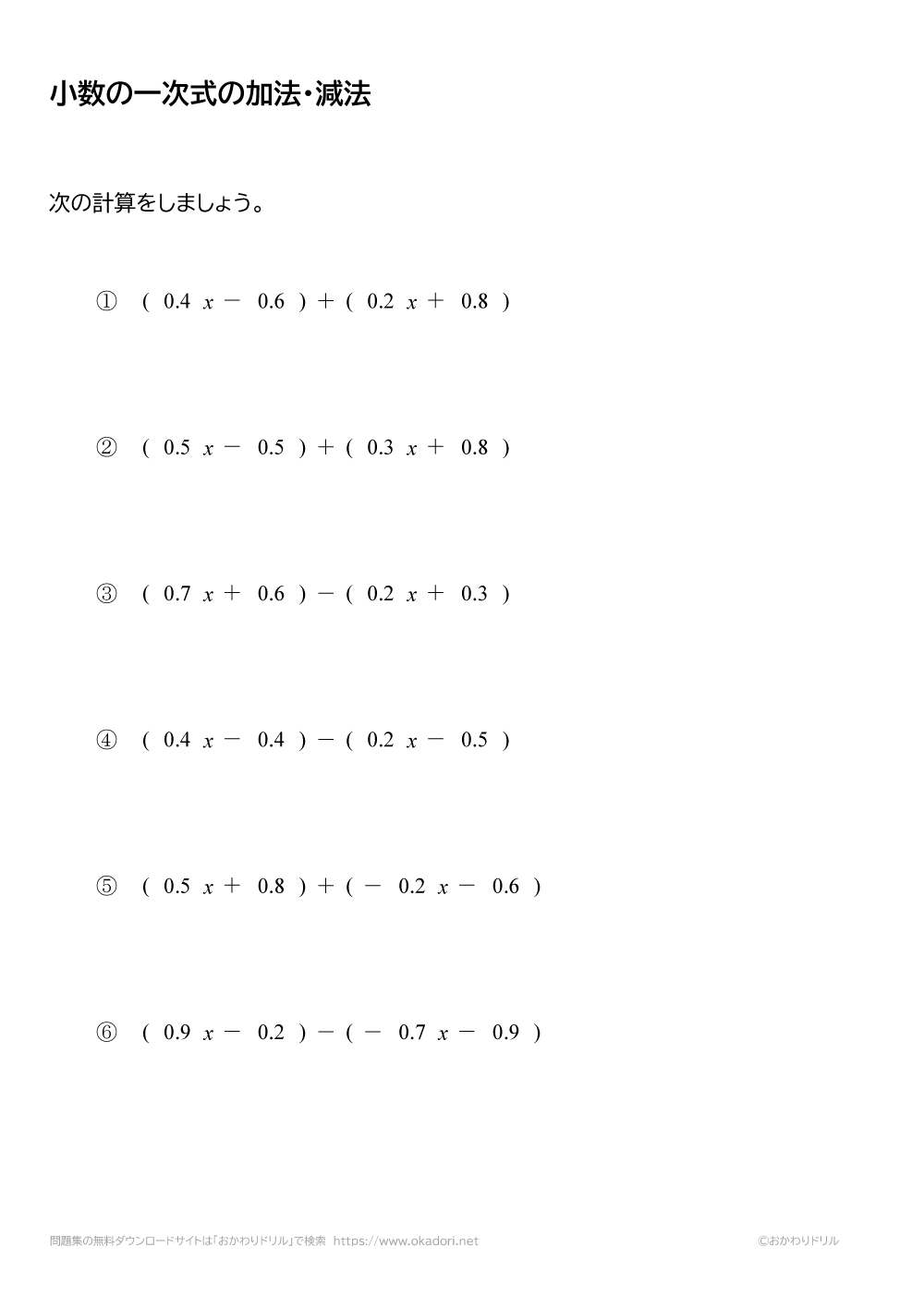 このページは、中学1年生で習う「小数の1次式の加法・減法」が学習できるページです ...