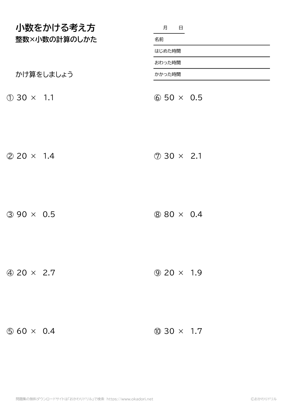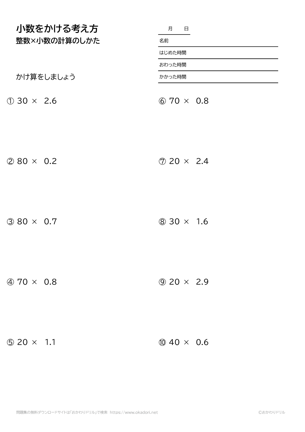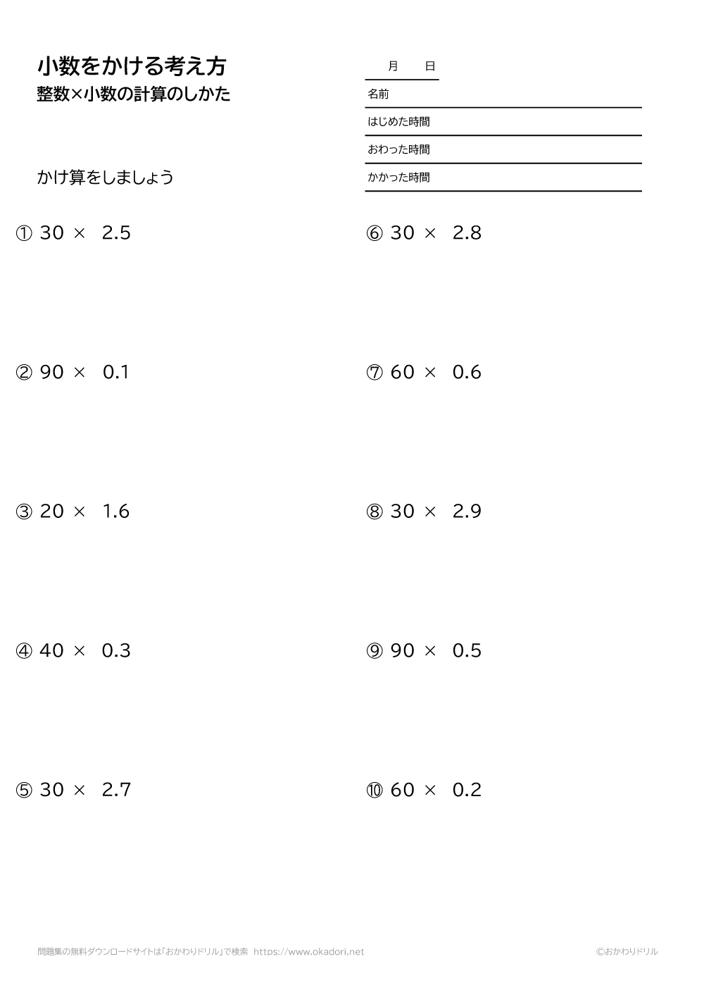 ・整数に小数を掛ける問題です。