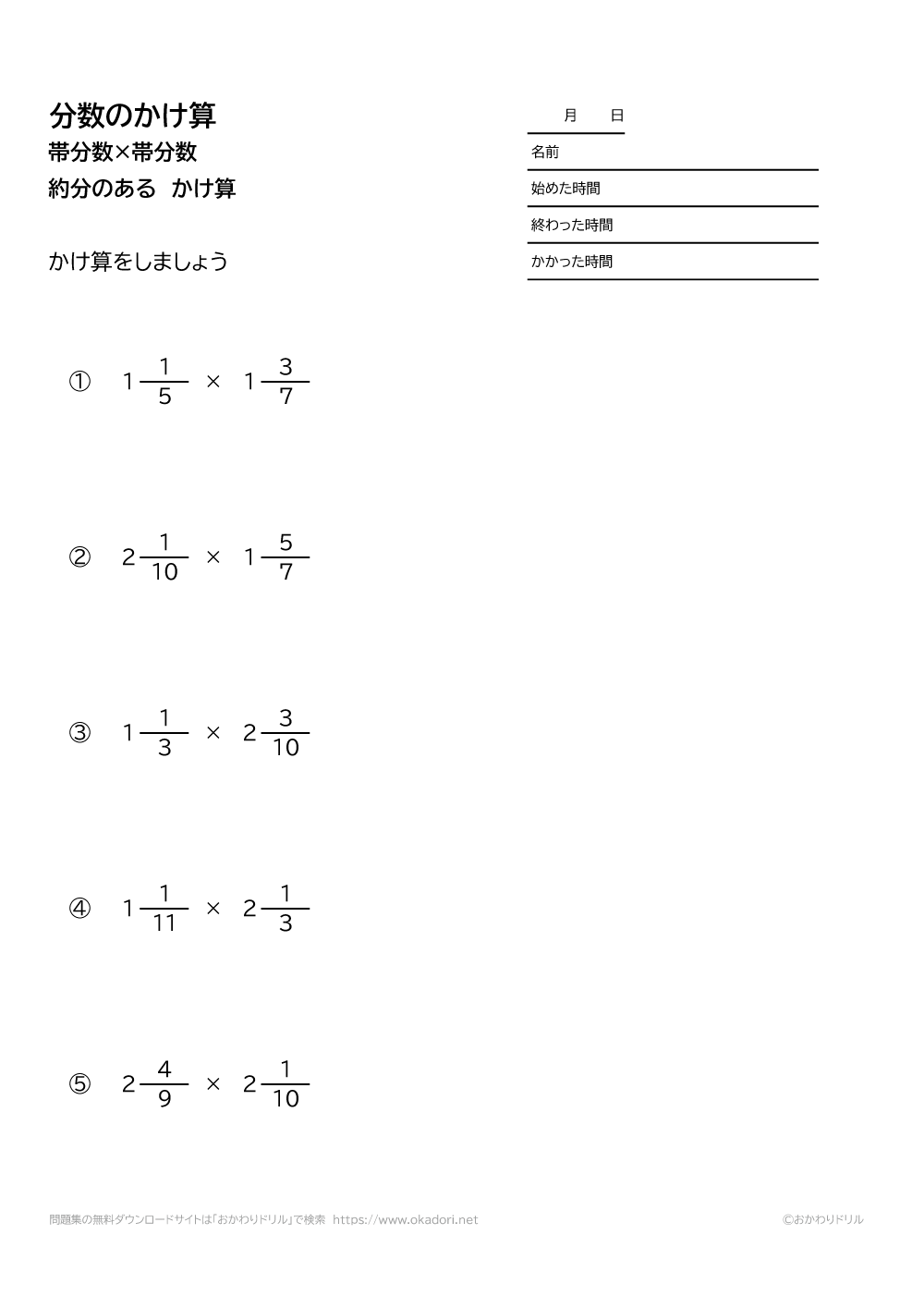 このページは、小学6年生で習う「帯分数×帯分数の約分のある掛け算」が学習できるページです。