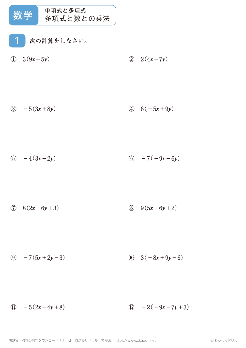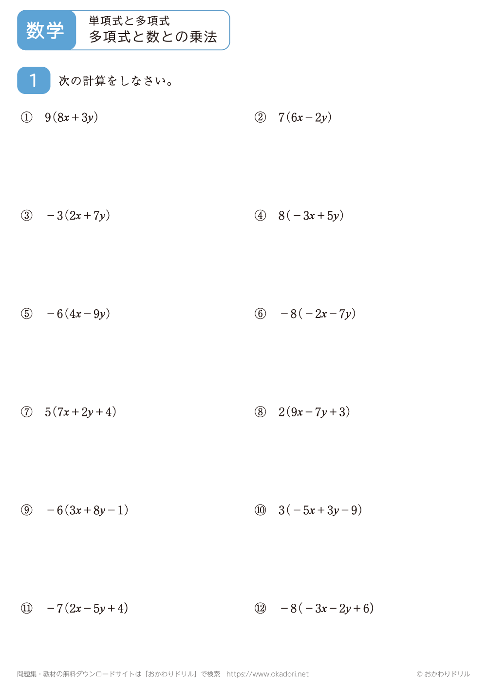 このページは、中学2年生で習う「多項式と数との乗法」が学習できるページです。