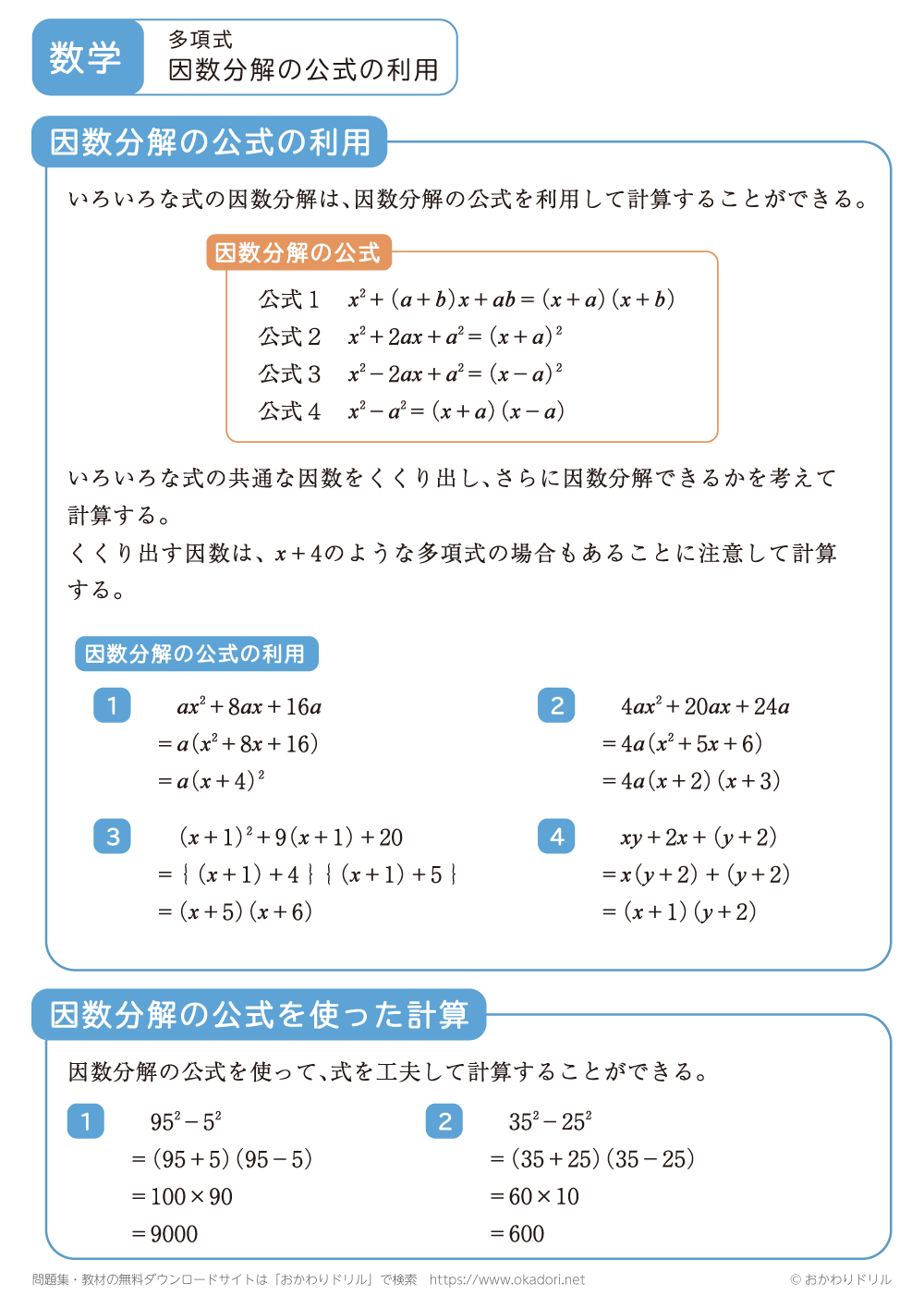 因数分解の公式