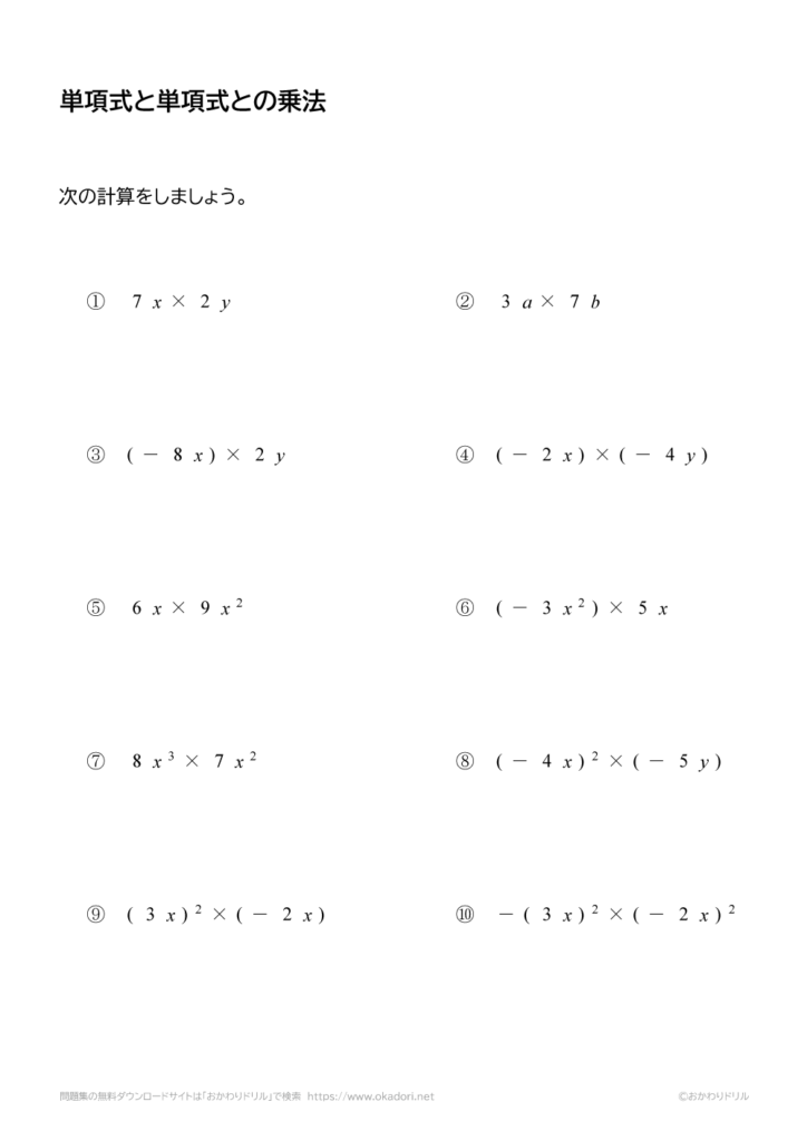 このページは、中学2年生で習う「単項式の乗法」が学習できるページです。