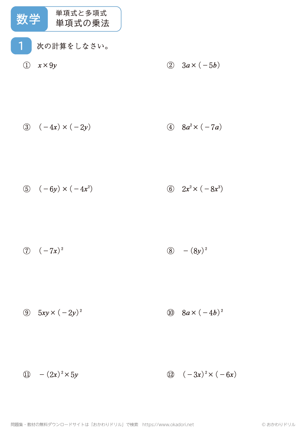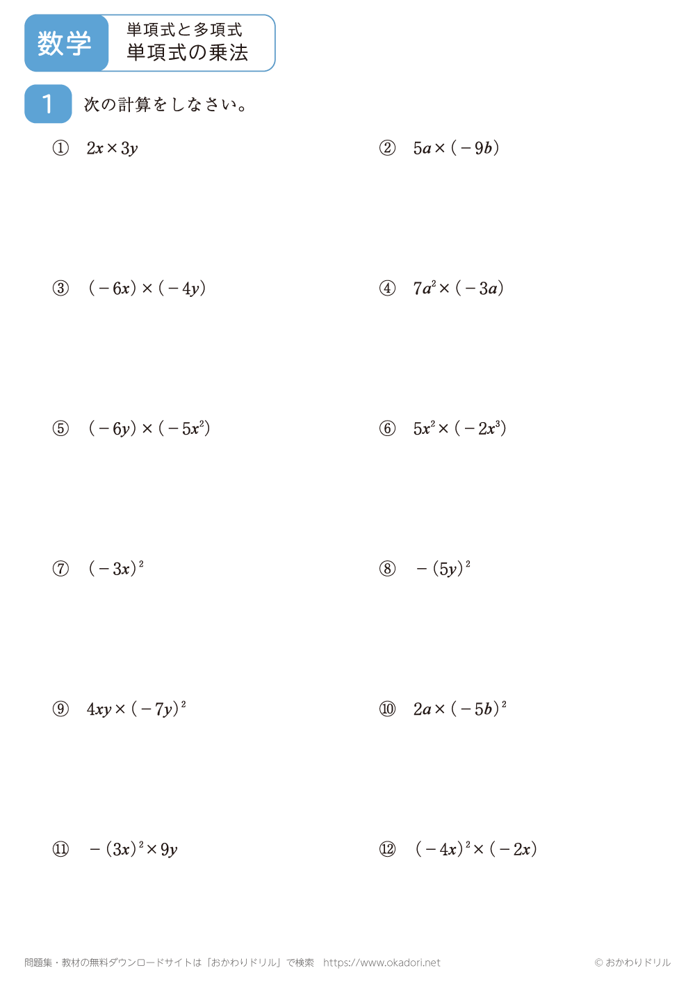 このページは、中学2年生で習う「単項式と多項式の項や次数」が学習できるページです ...