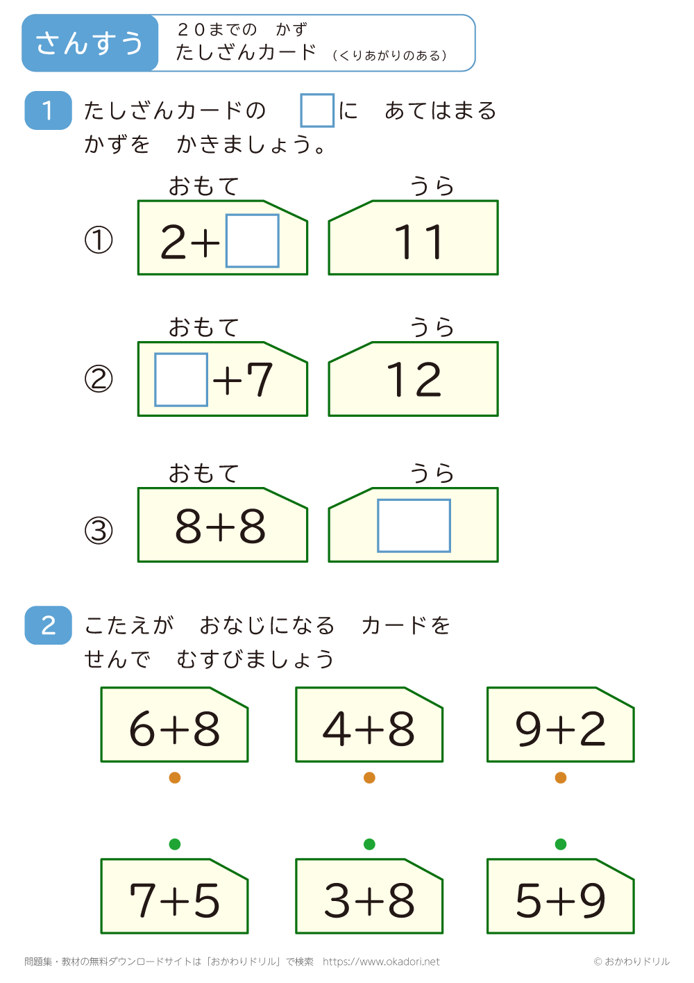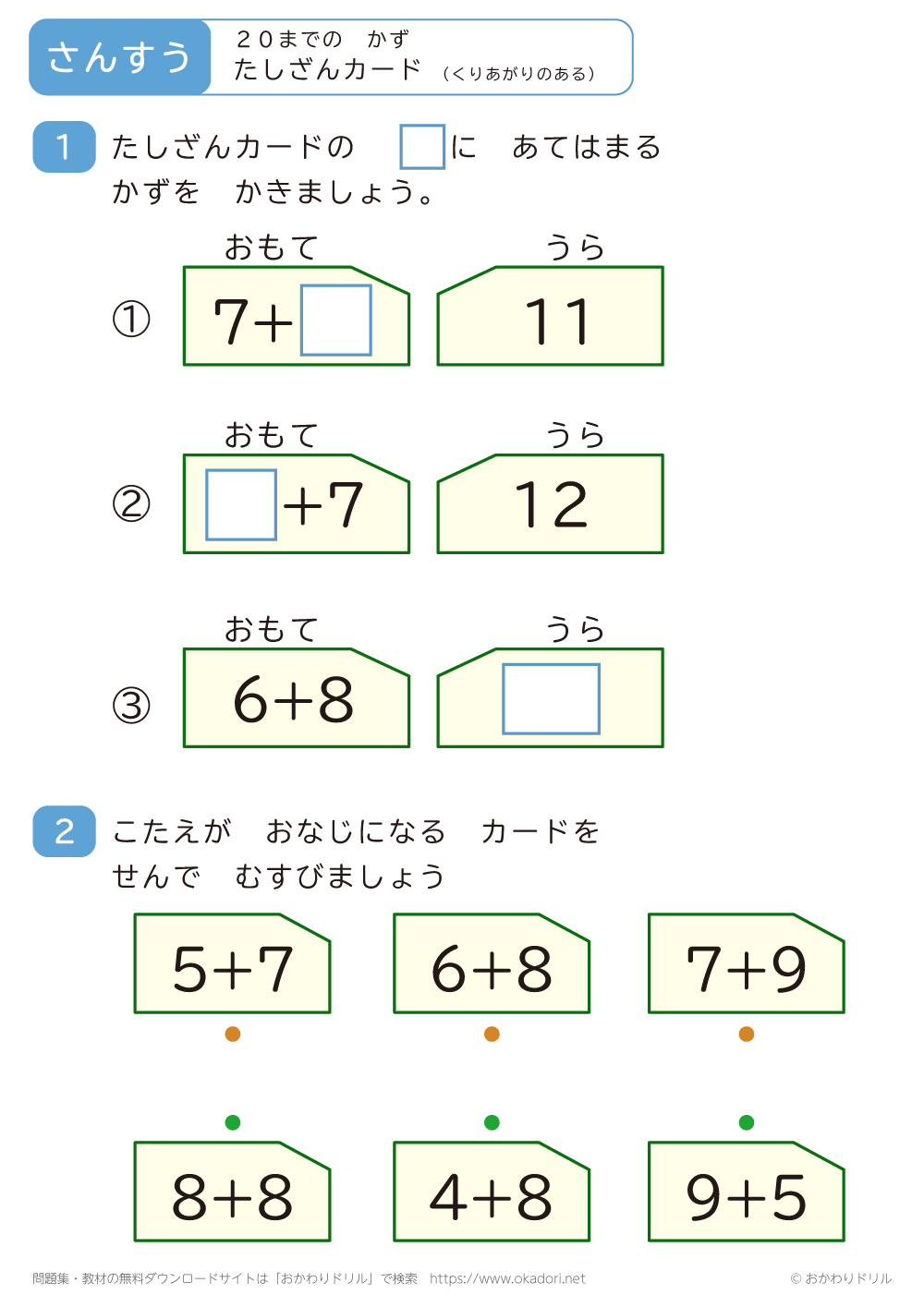 「足し算カード(くり上がりのある)」の学習プリントはこちら