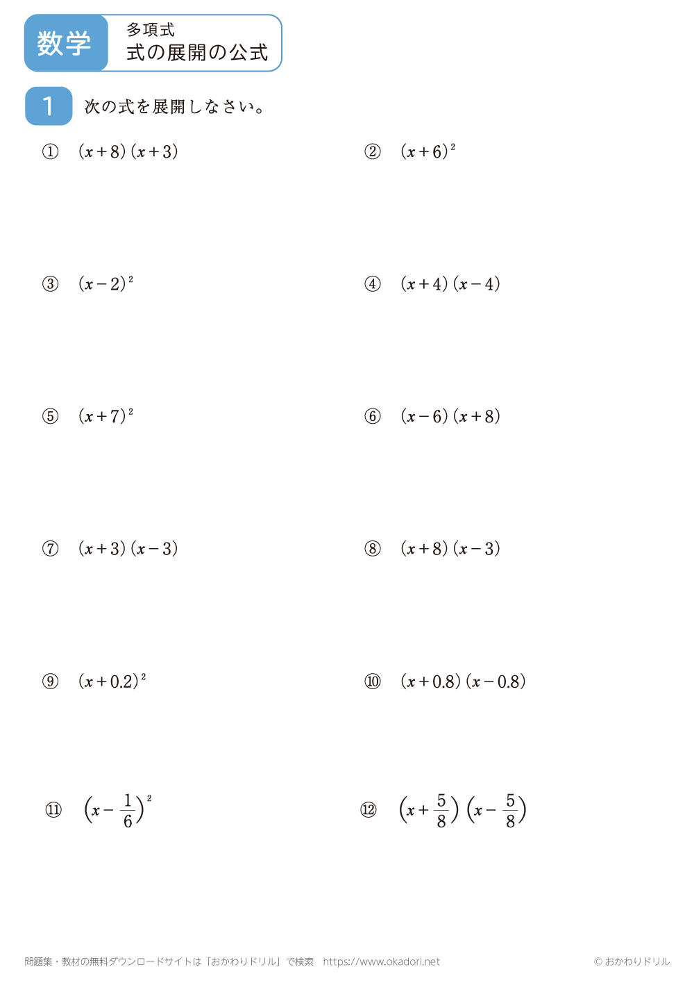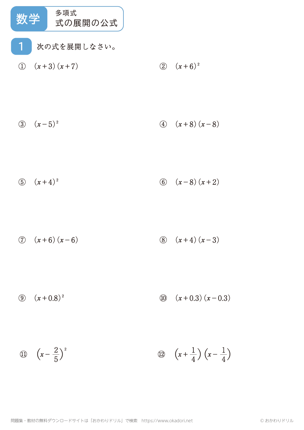 このページは、中学3年生で習う「式の展開の公式」が学習できるページです。 この問 ...