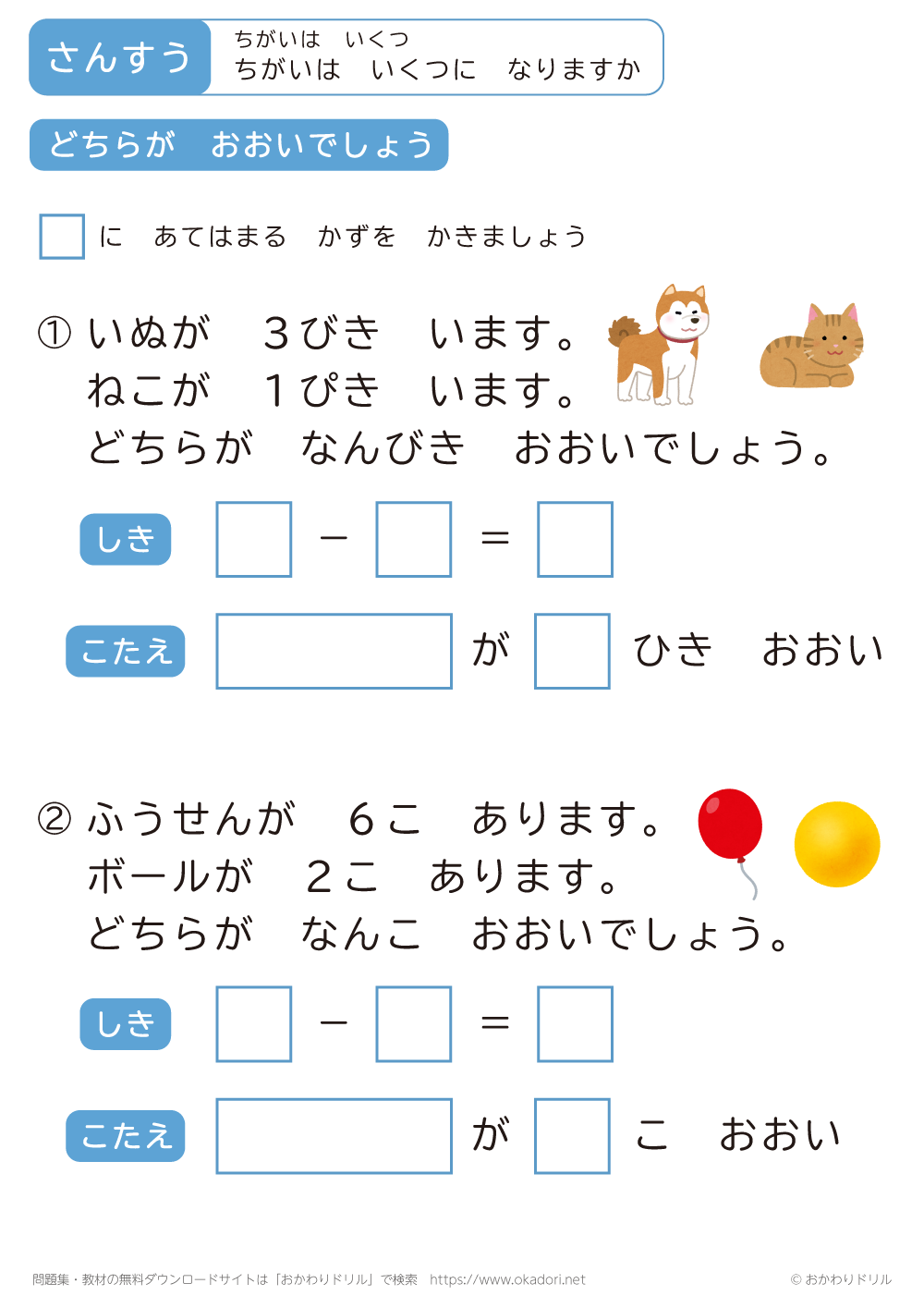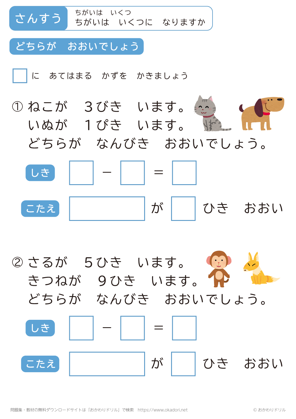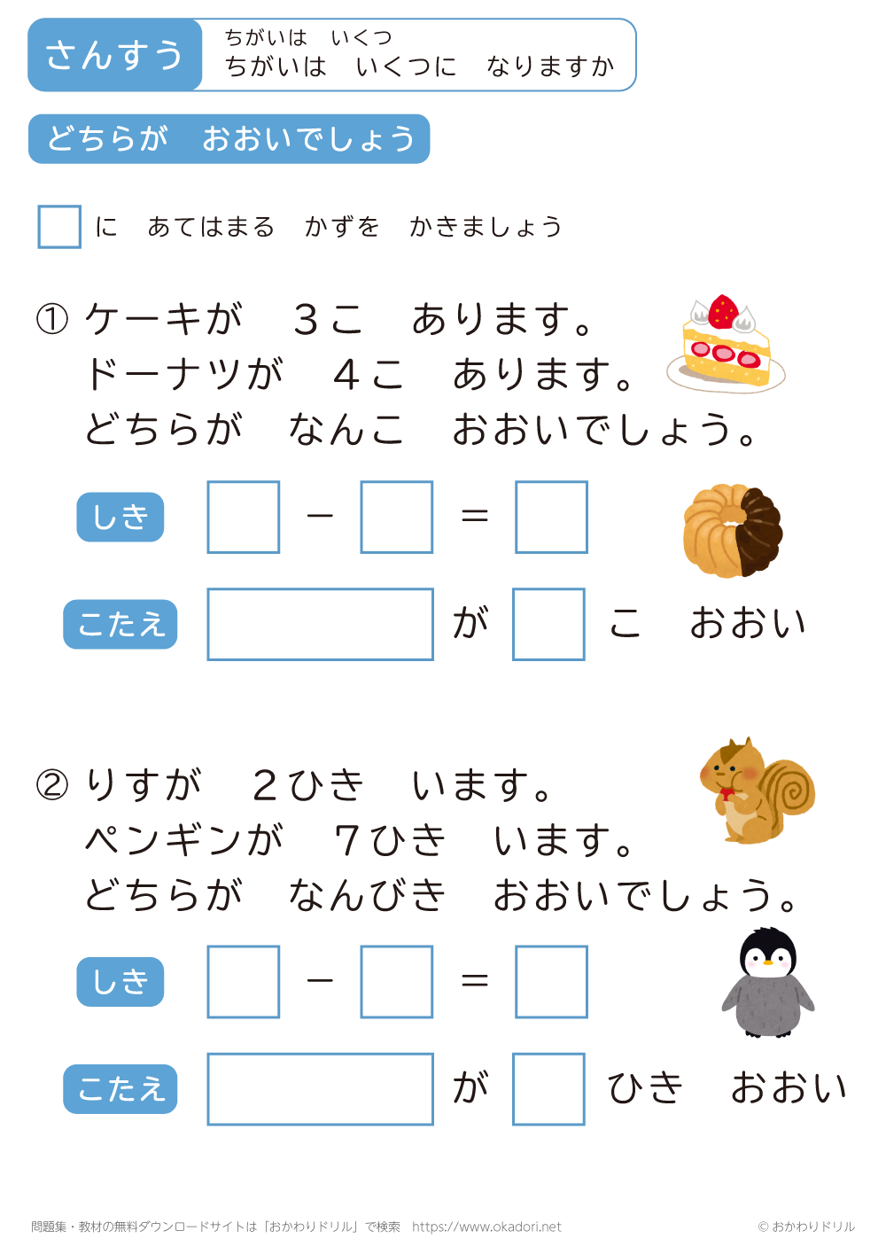 「ちがいはいくつ」の学習プリントはこちら