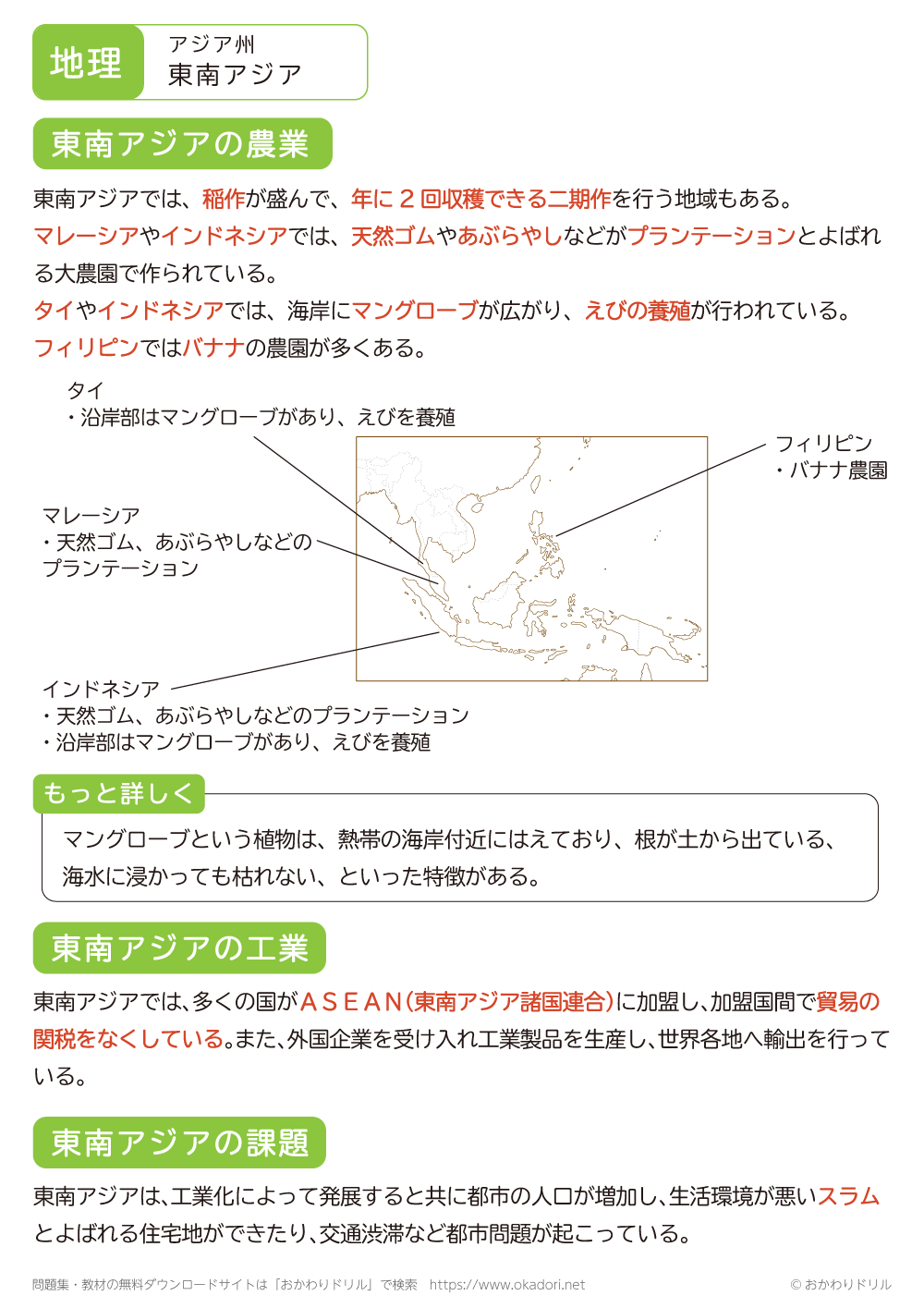 このページは、中学生で習う「東南アジアの農業・工業・課題」を学習できるページです ...