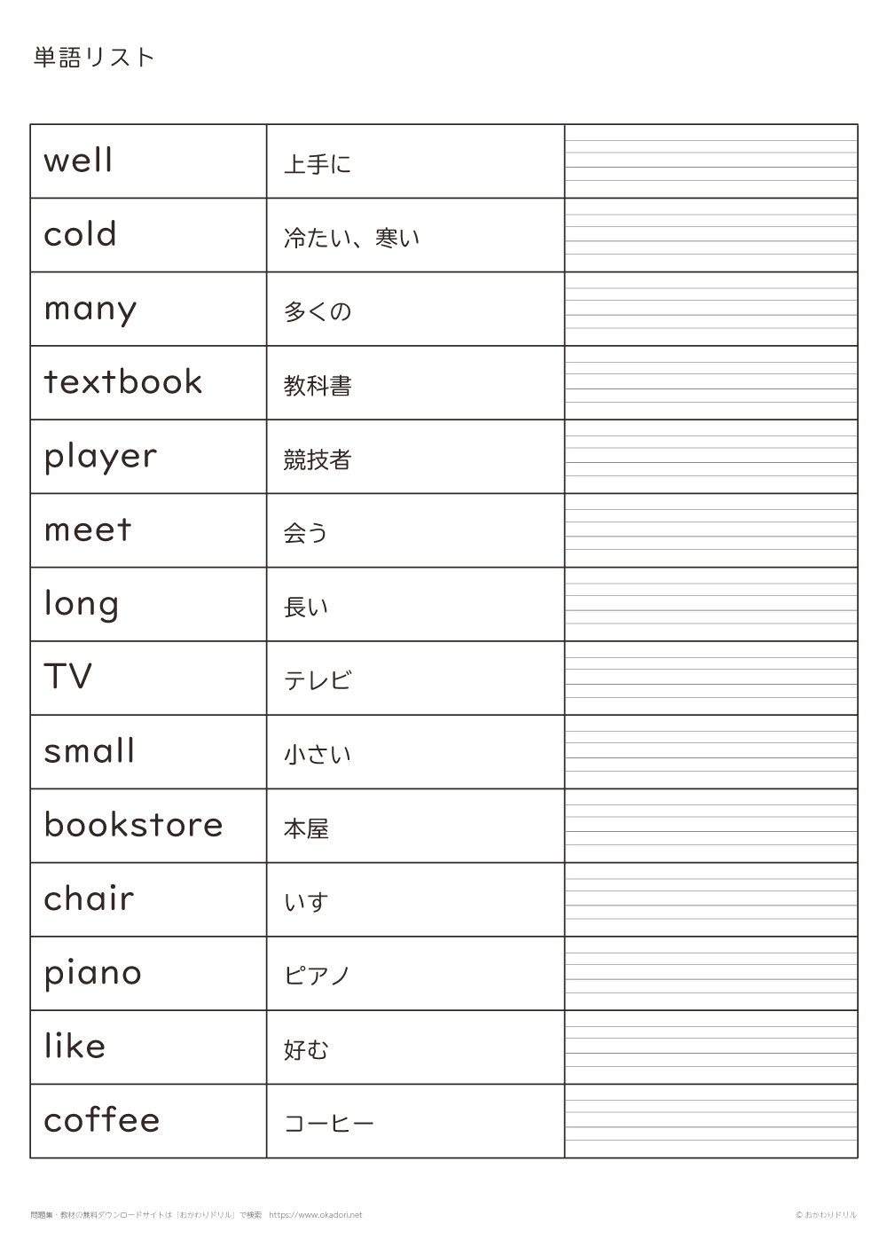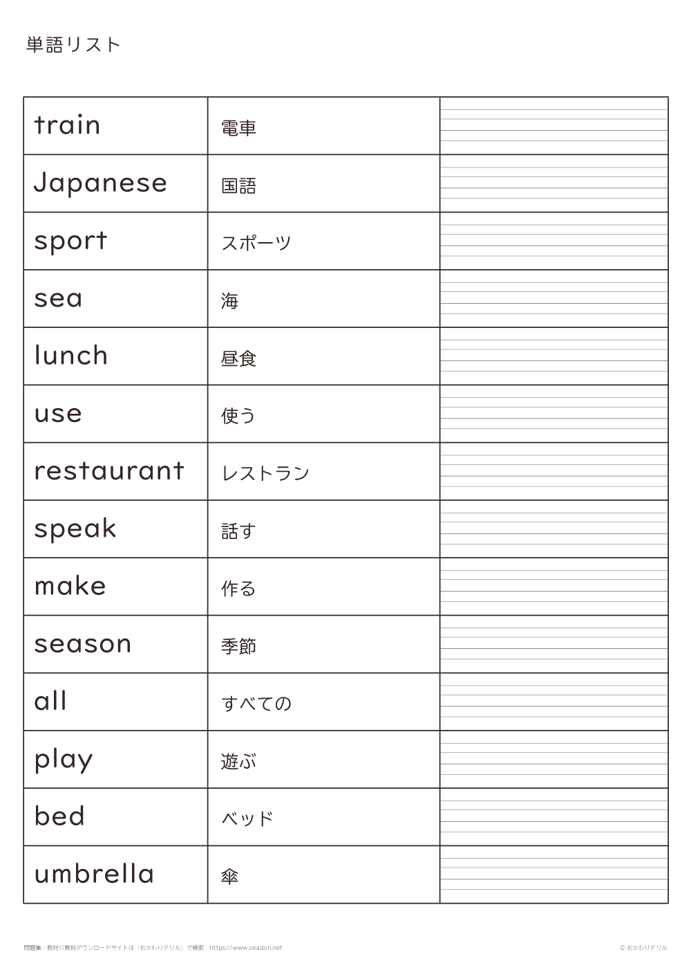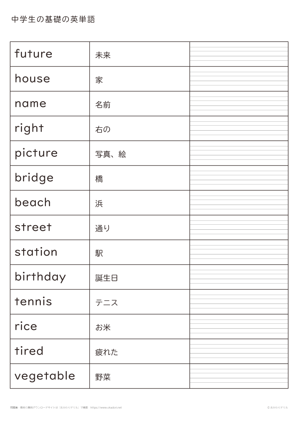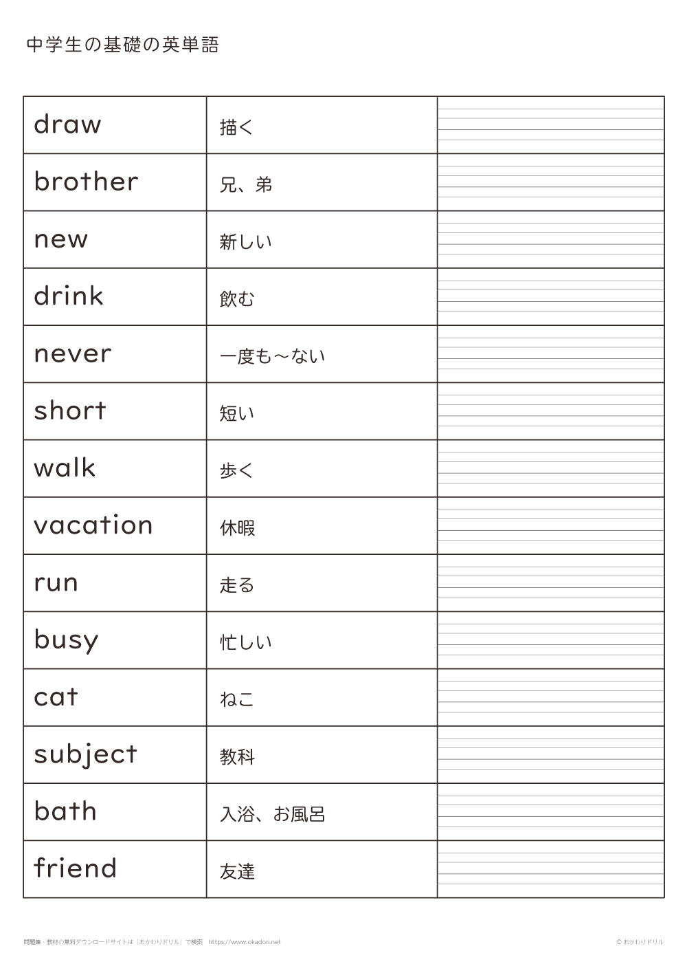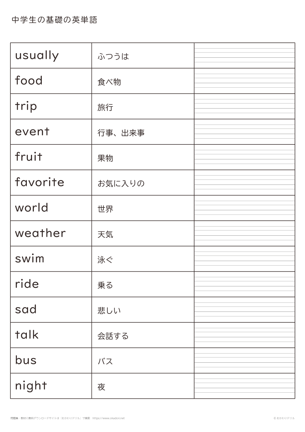 このページは、中学生が「基礎の英単語」を書いて覚えるための教材が無料でダウンロードできるページです。
