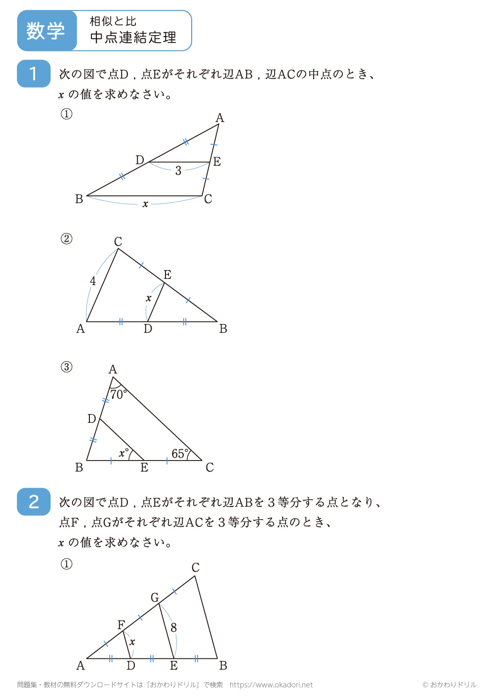 このページは、中学3年生で習う「三角形と比の定理」が学習できるページです。 この ...