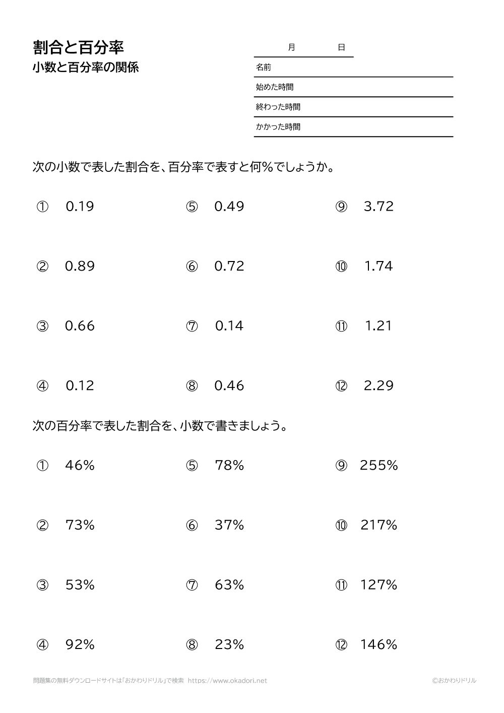 「割合と百分率」の学習プリントはこちら